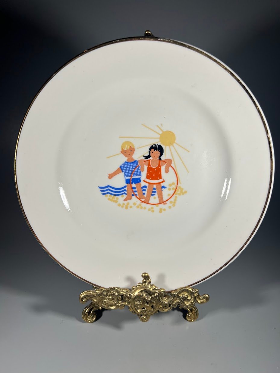 Lėkštė porcelianinė, latviška, vaikystės tema, Rygos porceliano fabriko, Rīgas Porcelāna Rūpnīca (RPR). 1960 m. Kaina 7
