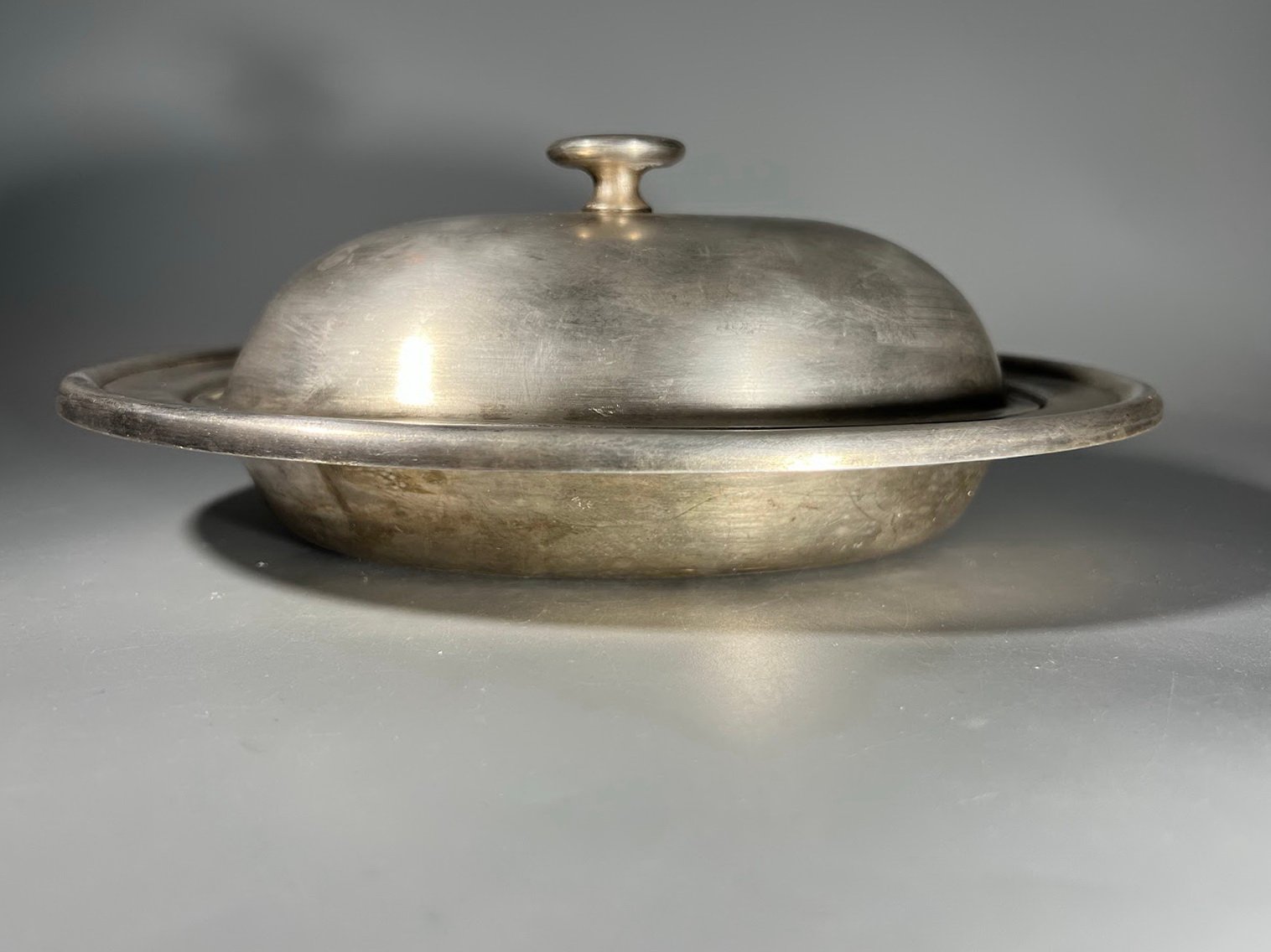 Lėkštė serviravimo su dangčiu, klošas (pranc. cloche – varpas). Indas naudojamas maistui uždengti ir patiekti. КОЛЬЧУГИНСКИЙ ЗАВОД, KOLCHUGINSKY ZAVOD. 1946–1962 m. Didesnis ir mažesnis, 2 vnt. Kaina 23 ir 21