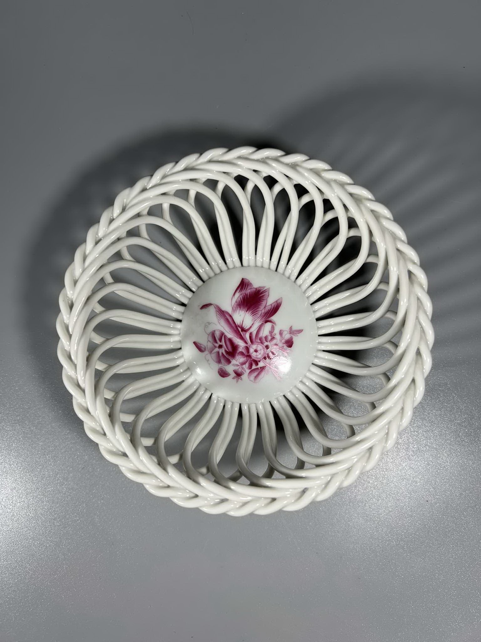Lėkštutė, indas krepšelis ažūrinis Herend Hungary breakthrough porcelain basket Apponyi violetinis. Kaina 43