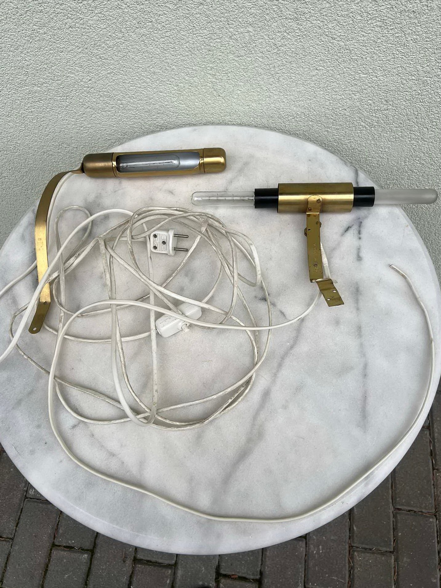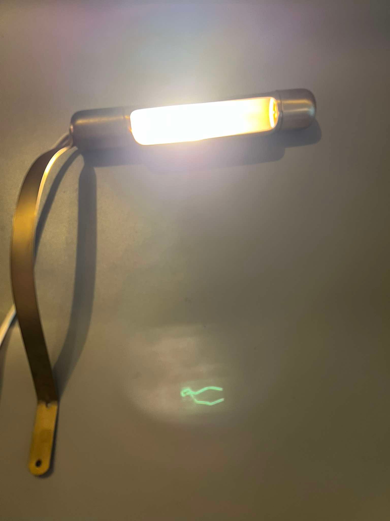 Lempa, lempos paveikslų apšvietimui. 2 vnt. Viena veikianti su jungikliu. Dvipusė nebandyta. Kaina 23 už abi.