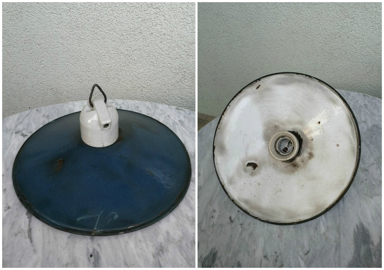 Lempa, šviestuvas skardiniu emaliuotu gaubtu, antikvarinė. Kaina 38
