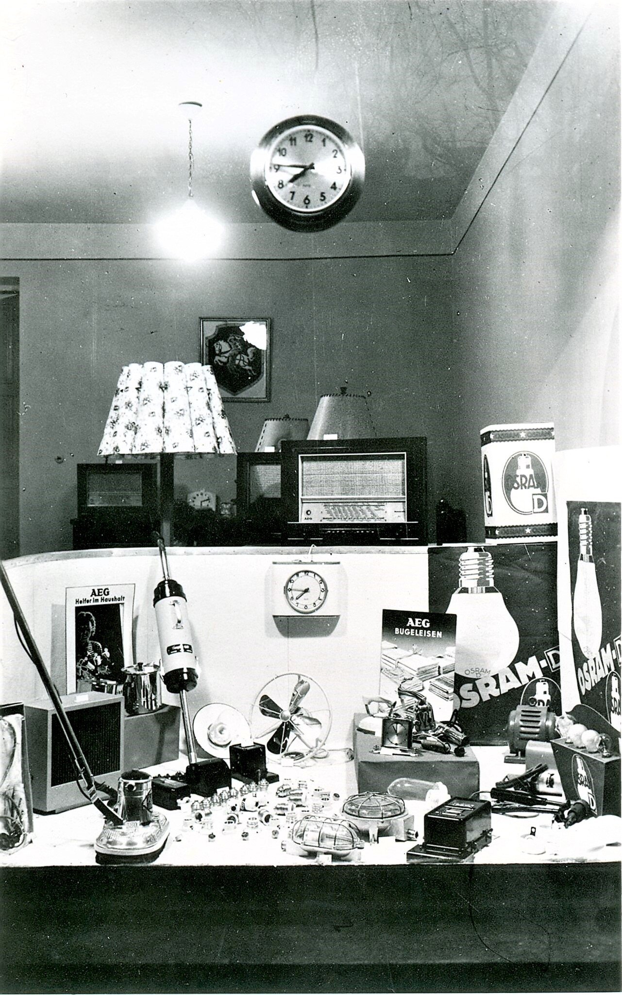 XX a. 4 deš. Gabrieliaus Macio elektrotechnikos parduotuvės vitrinos. Laisvės al., Kaunas. Gabrielius Macys buvo vienas iš Lietuvių prekybininkų, pramonininkų ir amatininkų sąjungos iniciatorių. Sajunga buvo įsteigta 1930 m.