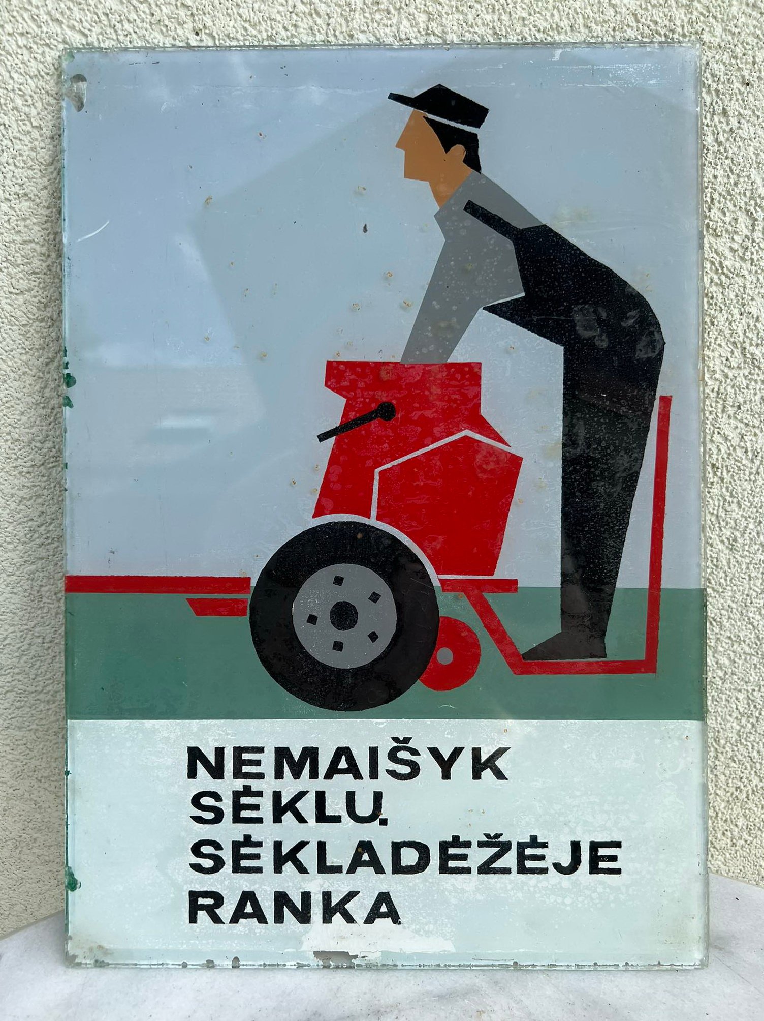 Lentelė, iškaba stiklinė NEMAIŠYK SĖKLŲ SĖKLADĖŽĖJE RANKA sovietinė, tarybinių laikų, Avant-garde stiliaus: Dydis: 25 x 36 cm. Kaima 68
