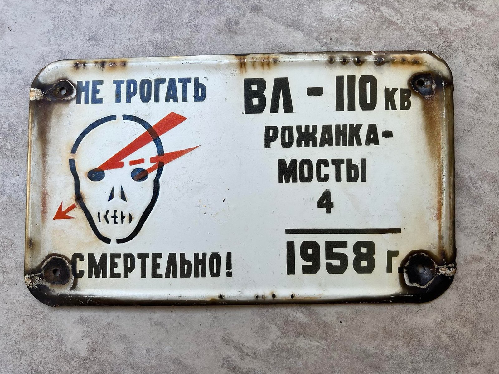 Lentelė skardinė, emaliuota su kaukole, įspėjamoji, sovietinė, tarybinių laikų.1958 m. Dydis: 17 x 29 cm. Kaina 42