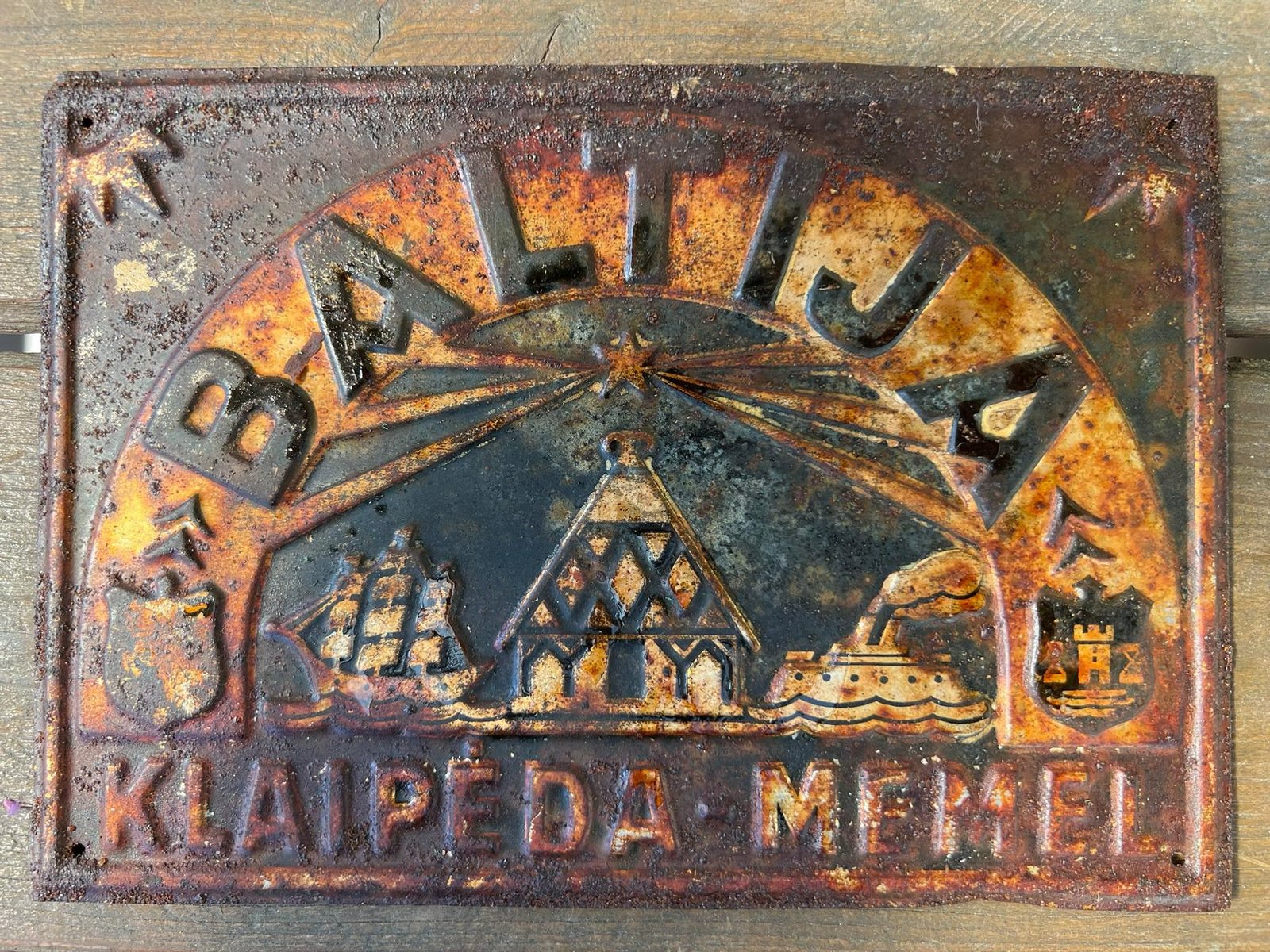 Lentelė skardinė tarpukario laikų BALTIJA KLAIPĖDA-MEMEL. Originalas. Kaina 107