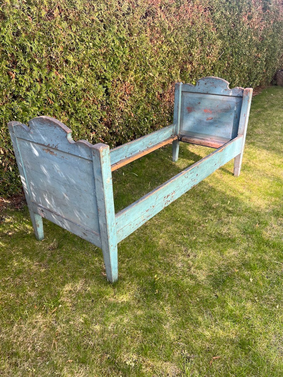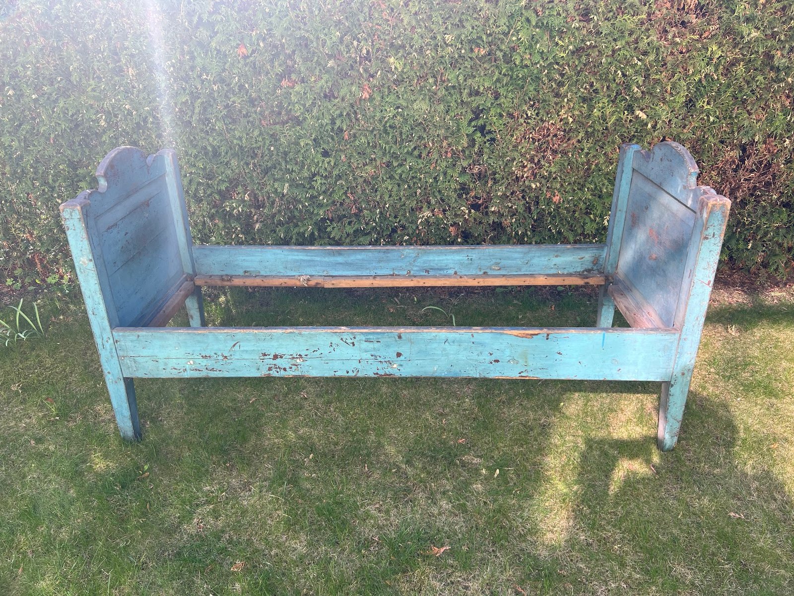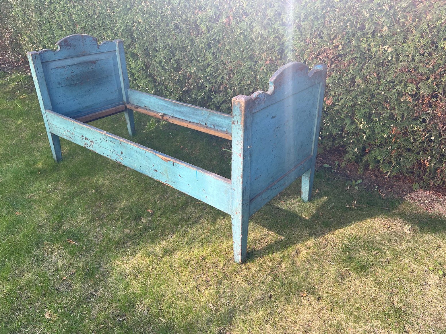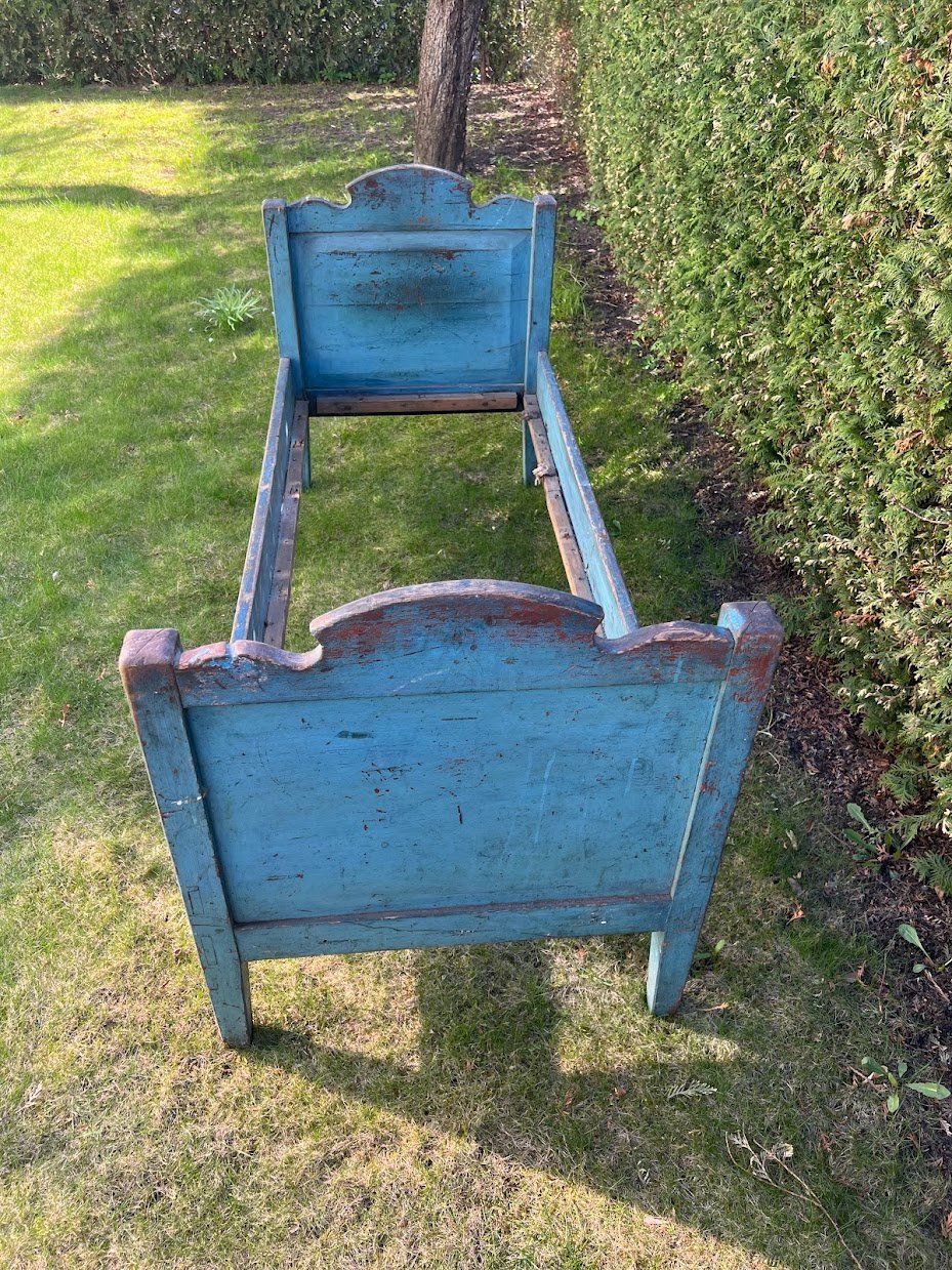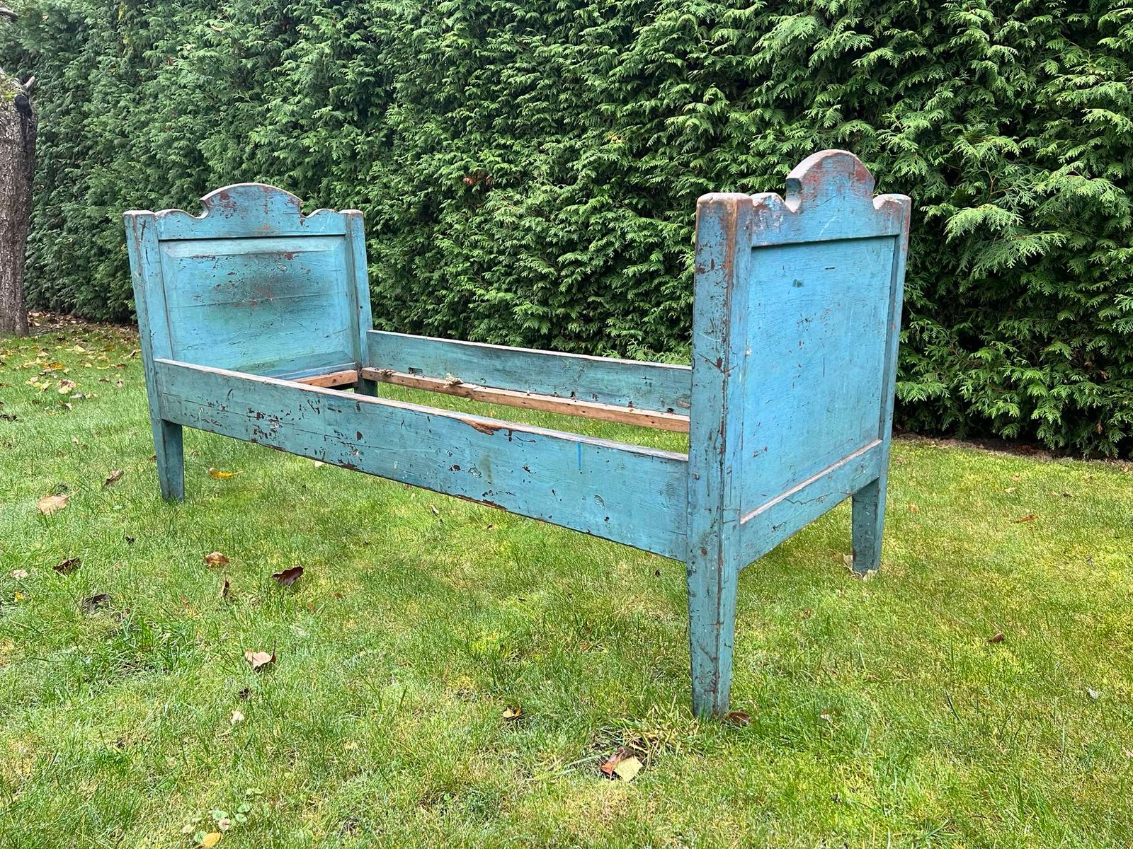 Lova medinė, antikvarinė, smetoniška, tarpukario laikų, autentiška mėlyna spalva, liaudiško stiliaus, tvirta. Kaina 53