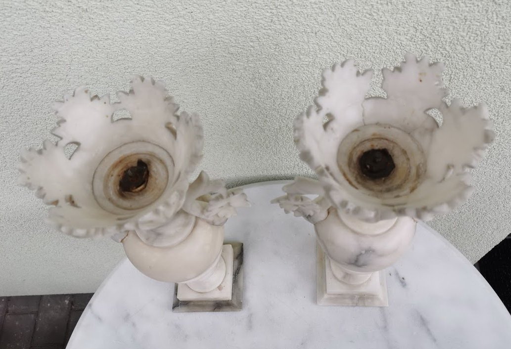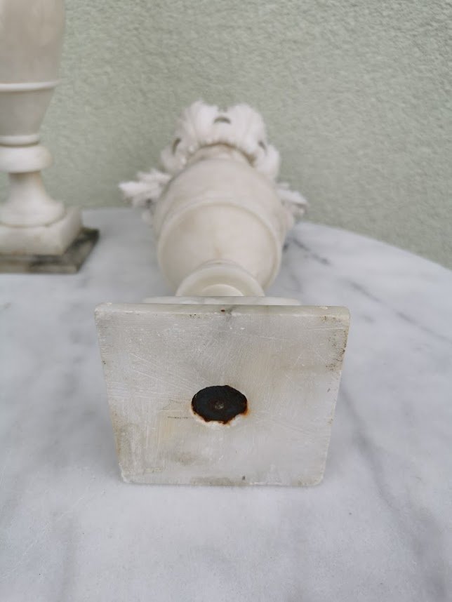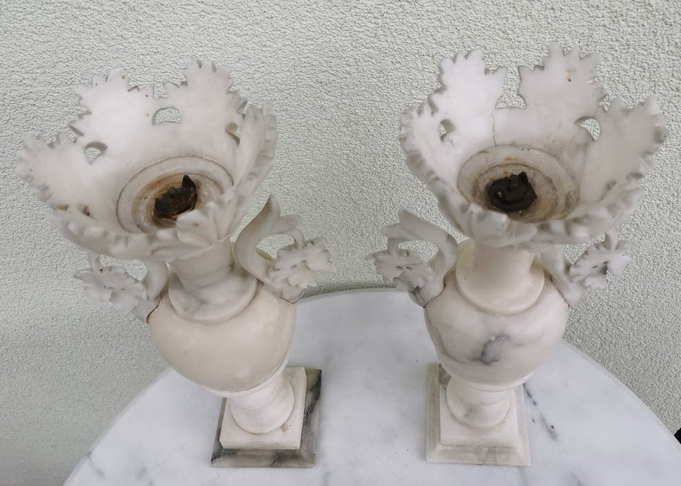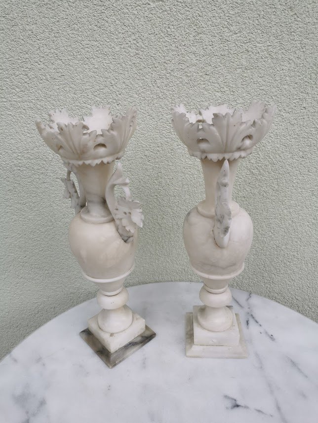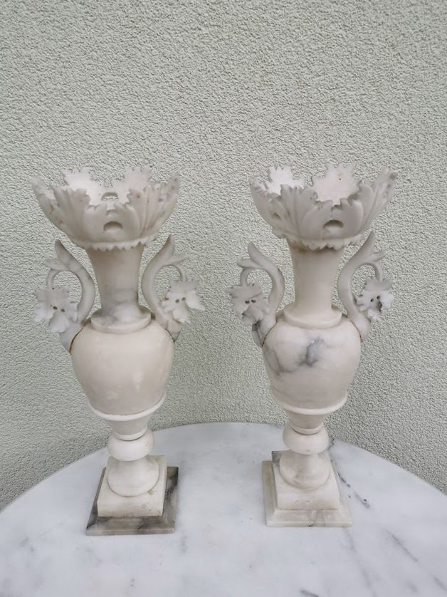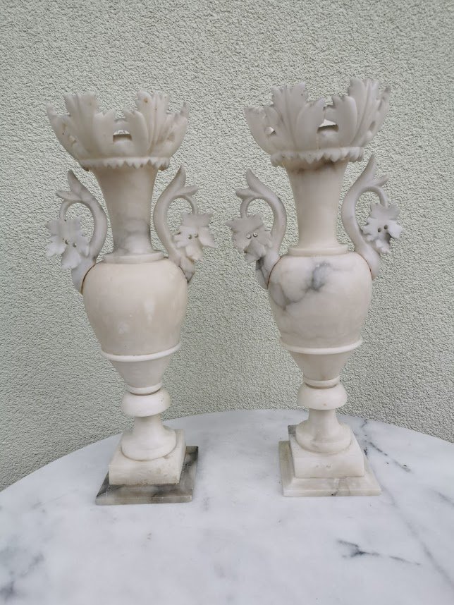 Marmuriniai, antikvariniai papuošimai, vazos, kolonos, žvakidės. 2 vnt. Kaina po 82