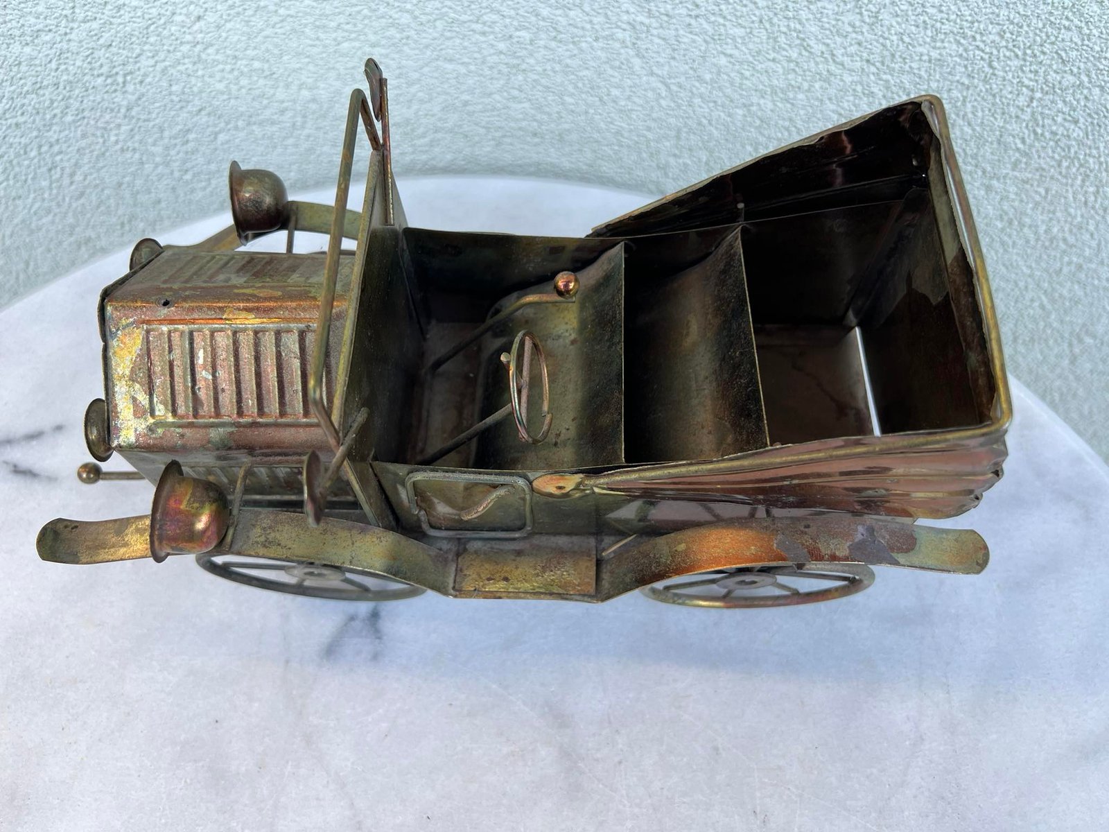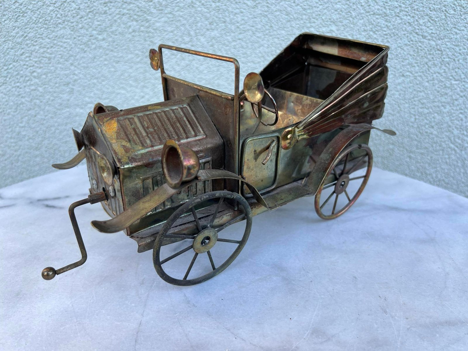 Mašina, mašinėlė senovinio stiliaus, skardinė, muzikinė, dėžutė, prisukama, groja melodiją. Ilgis 30, plotis 11, aukštis 15 cm. Kaina 44