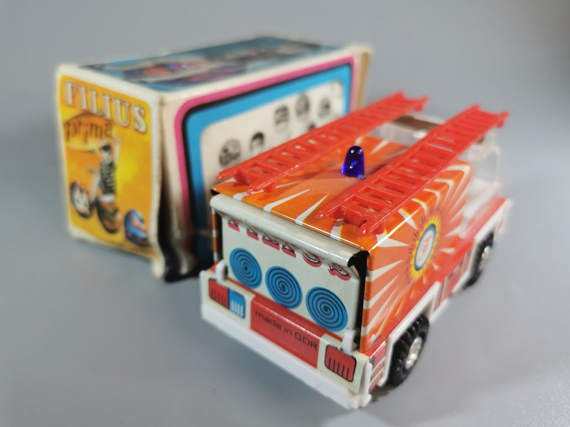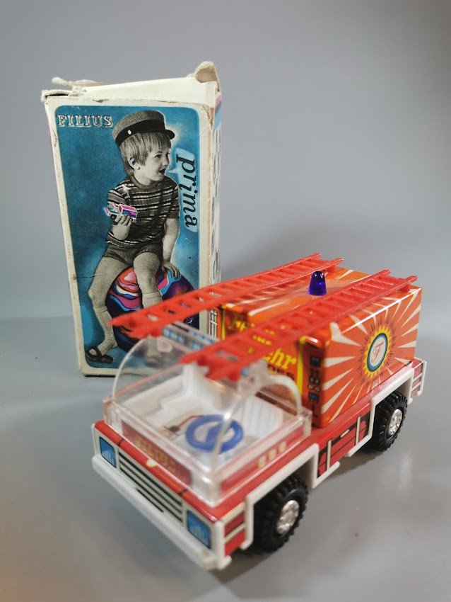 Mašinėlė Gaisrinė, skardinė, originalioje dėžutėje, tarybinių laikų. Dėžutės ilgis 11,5, aukštis 6,5 cm. Kaina 18