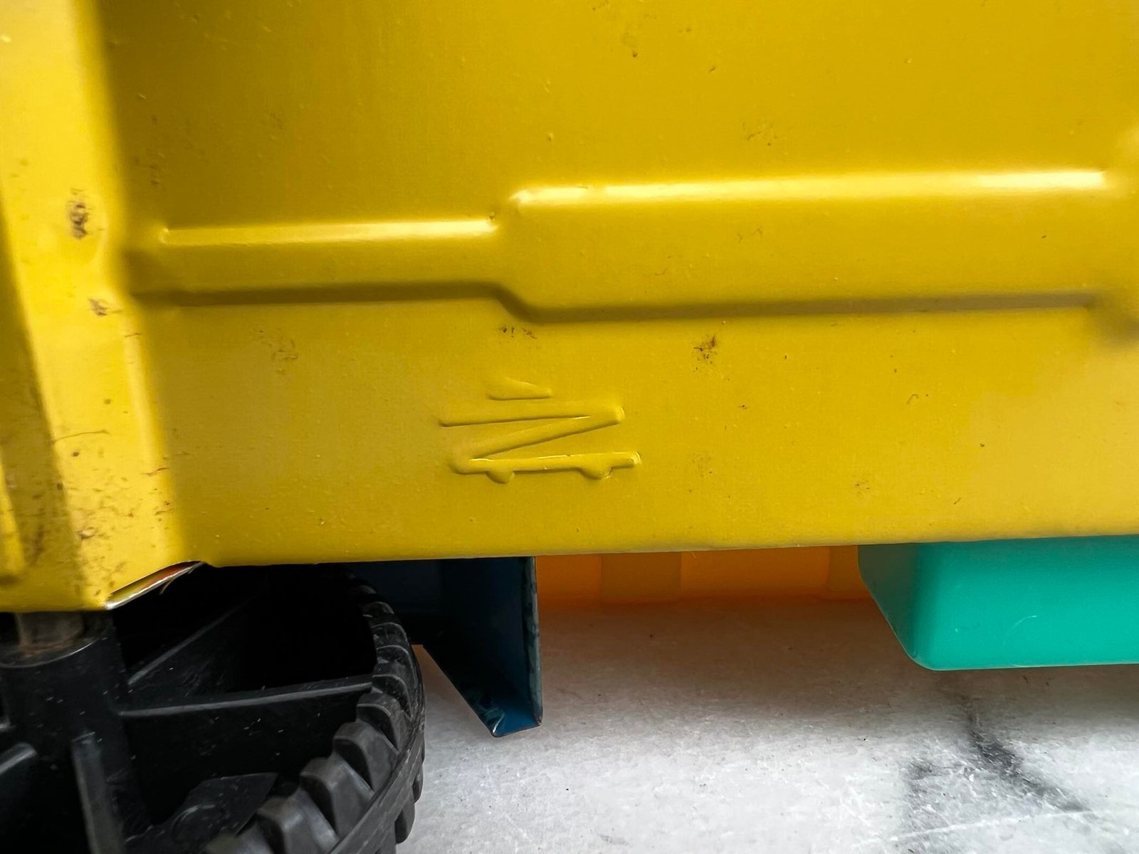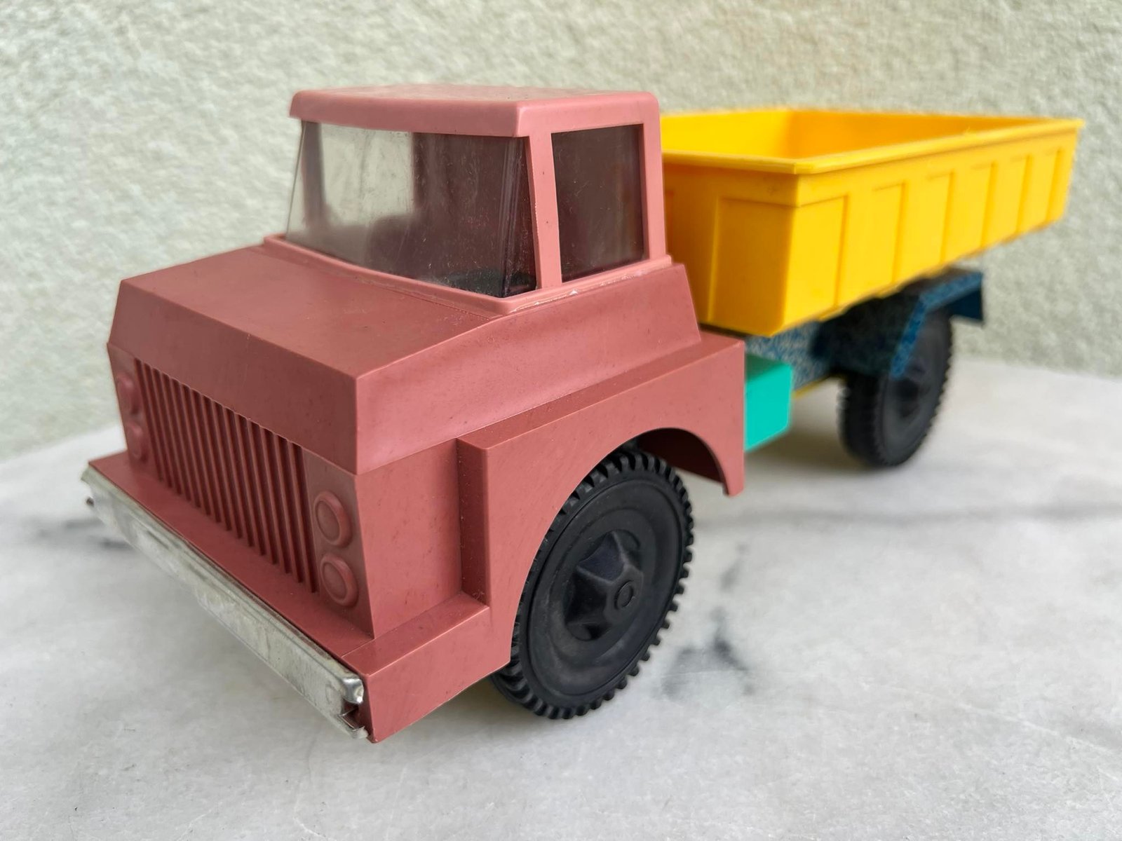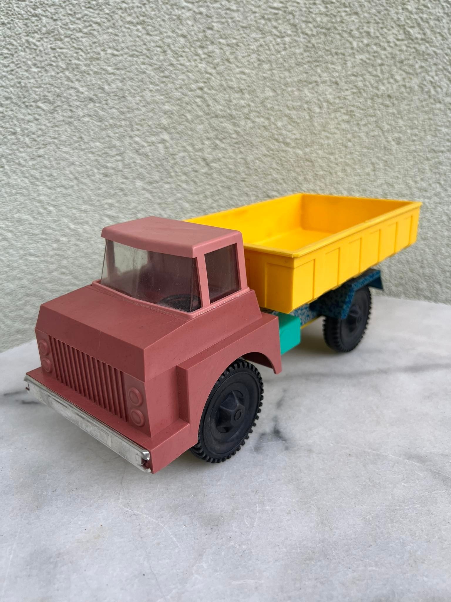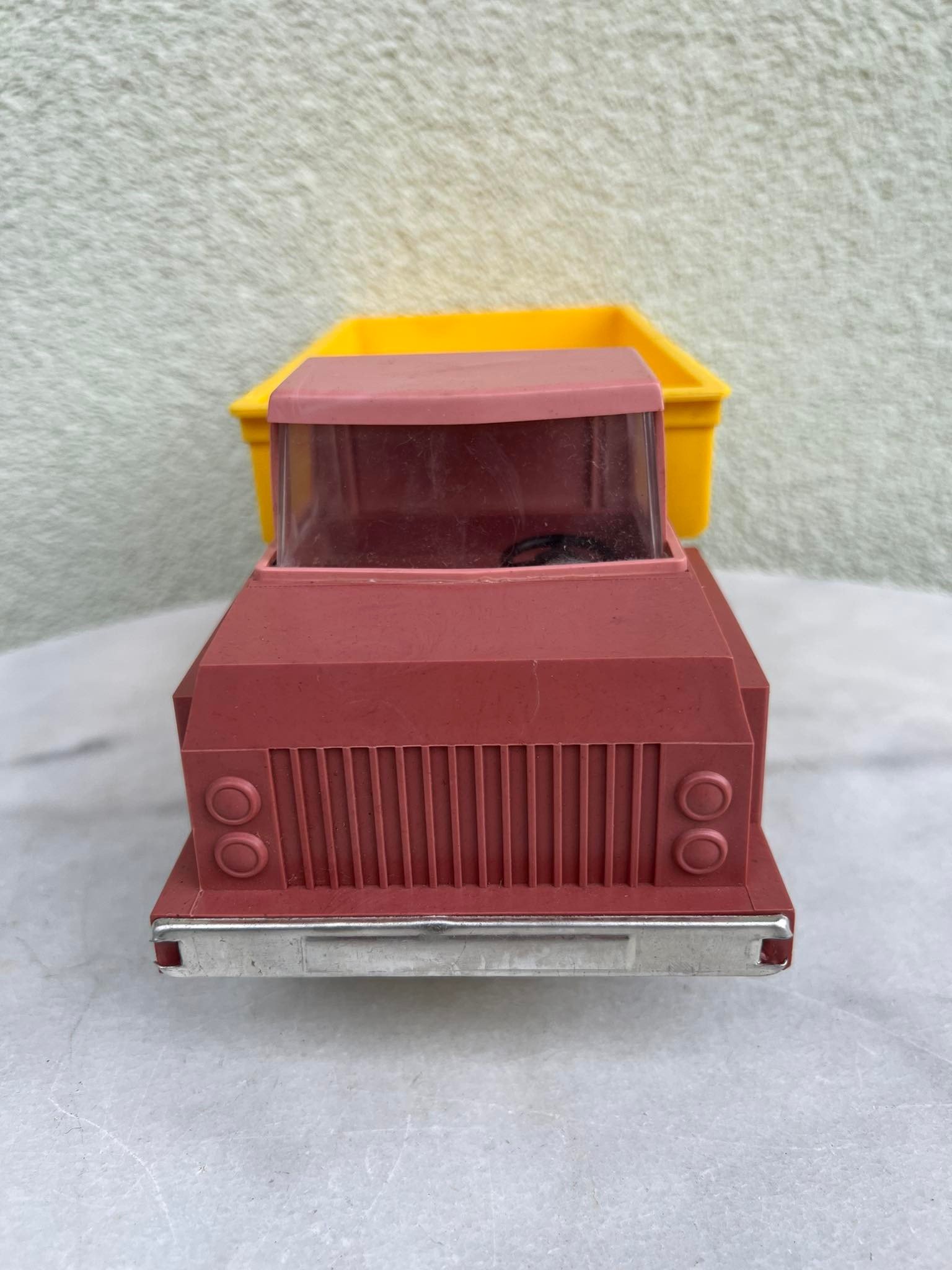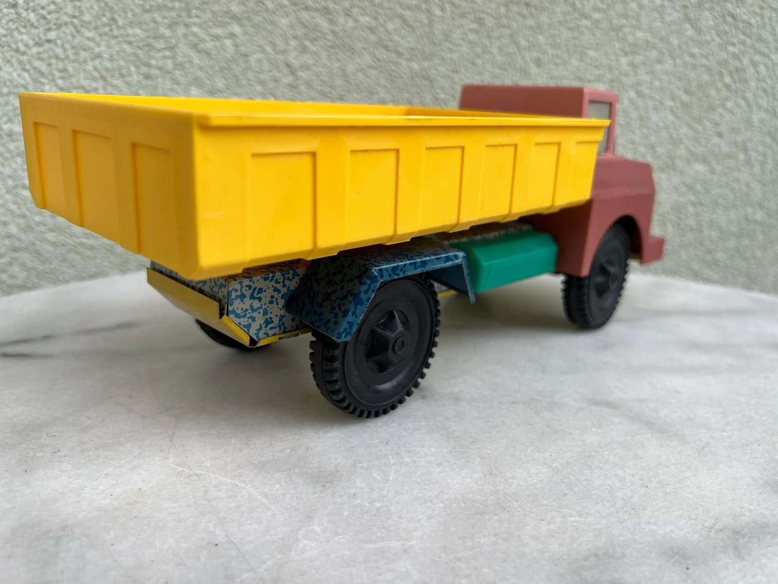 Mašinėlė, mašina sunkvežimis skardinė, tarybinių laikų, LTSR pereinamojo laikotarpio. Ilgis 30, plotis 11 cm. Kaina 48