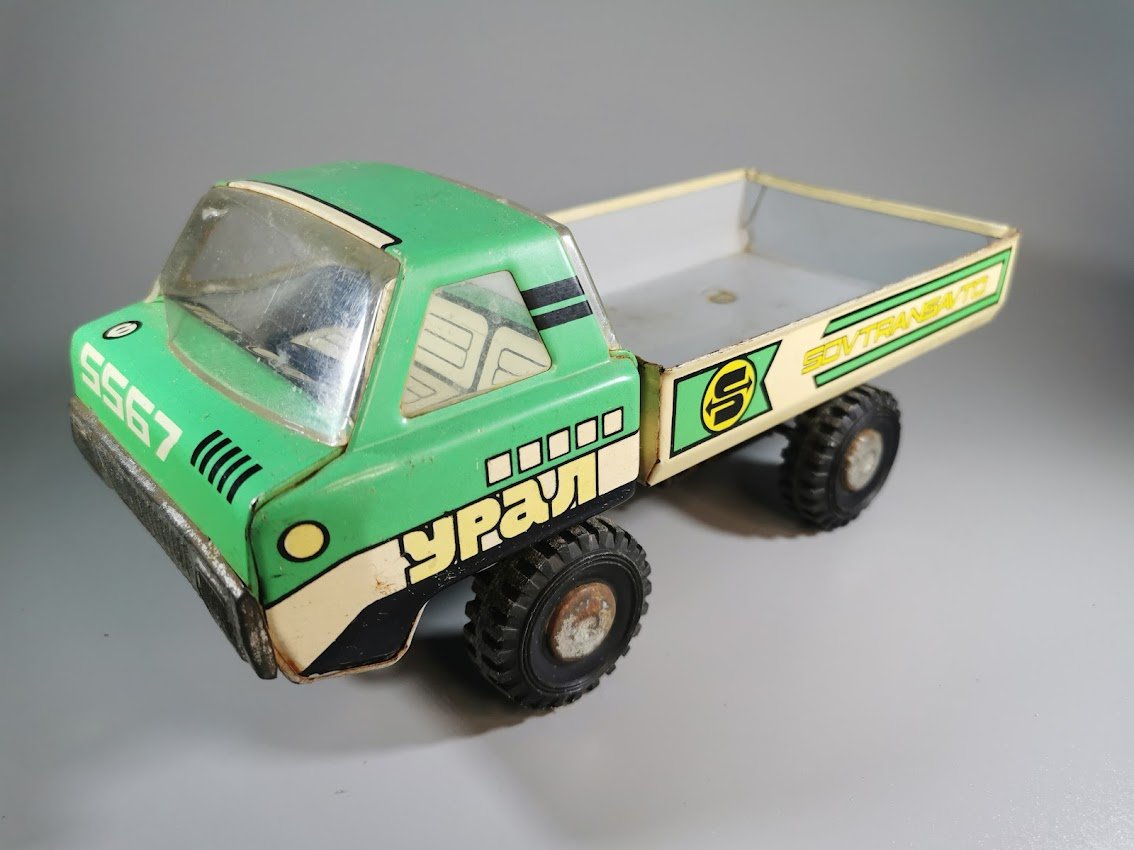 Mašinėlė skardinė УРАЛ, URAL tarybinių laikų. Ilgis 26, plotis 12, aukštis 12 cm. Prisukimo mechanizamas veikia. Raktelis nekomplektiojams. Kaina 56