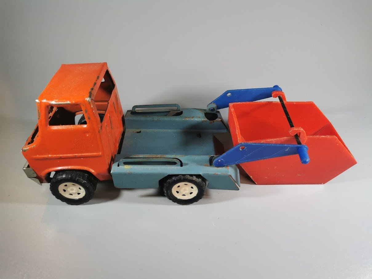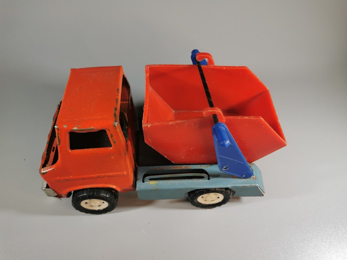 Mašinėlė skardinė, tarybinių laikų, apie 1960 m. Ilgis 20, plotis 9, aukštis 10 cm. Kaina 32