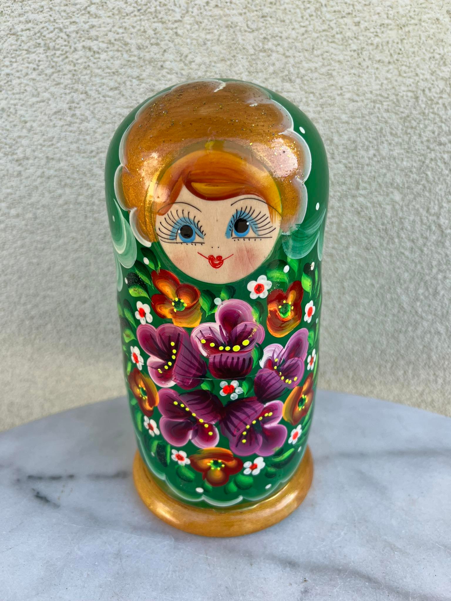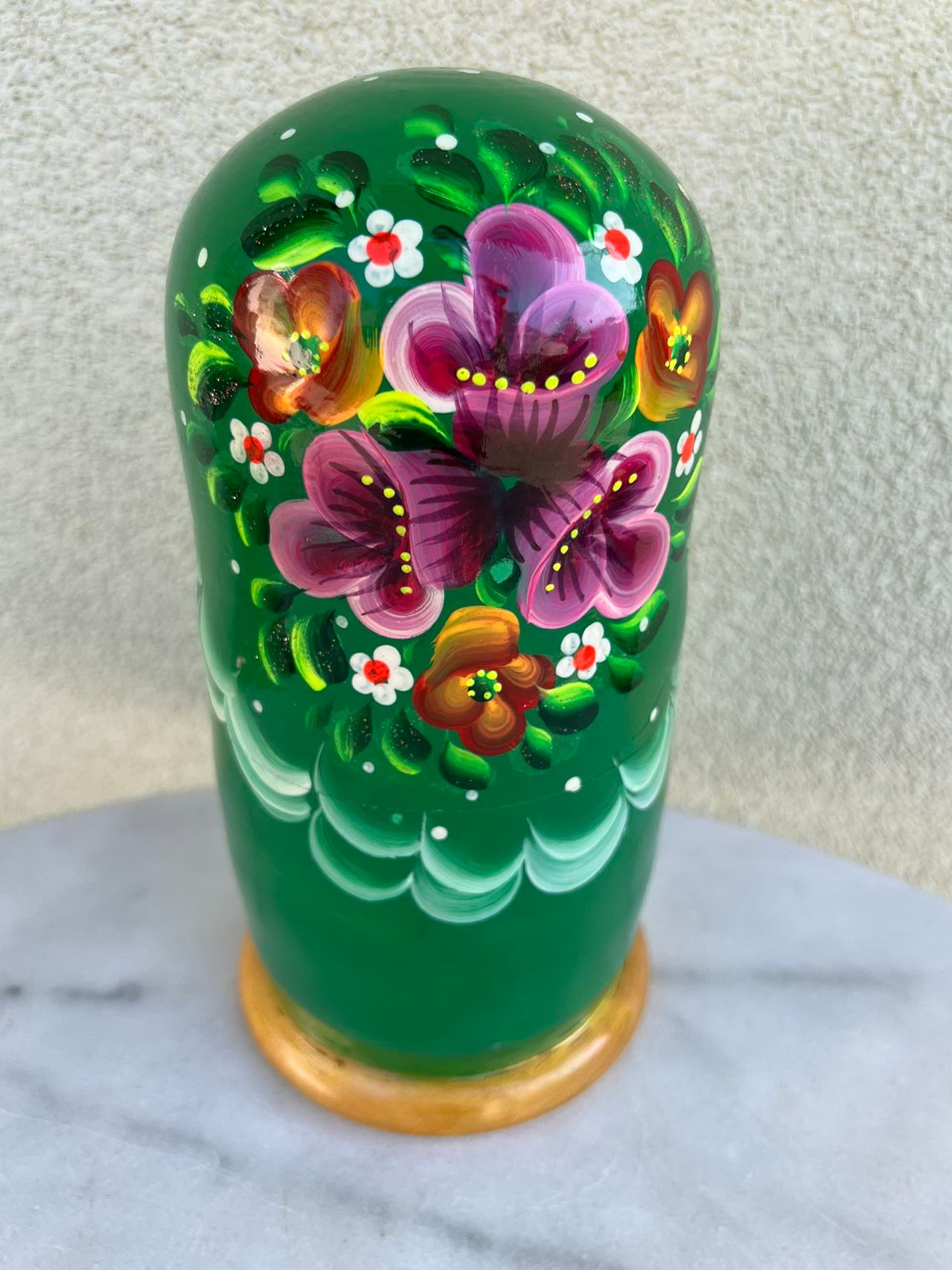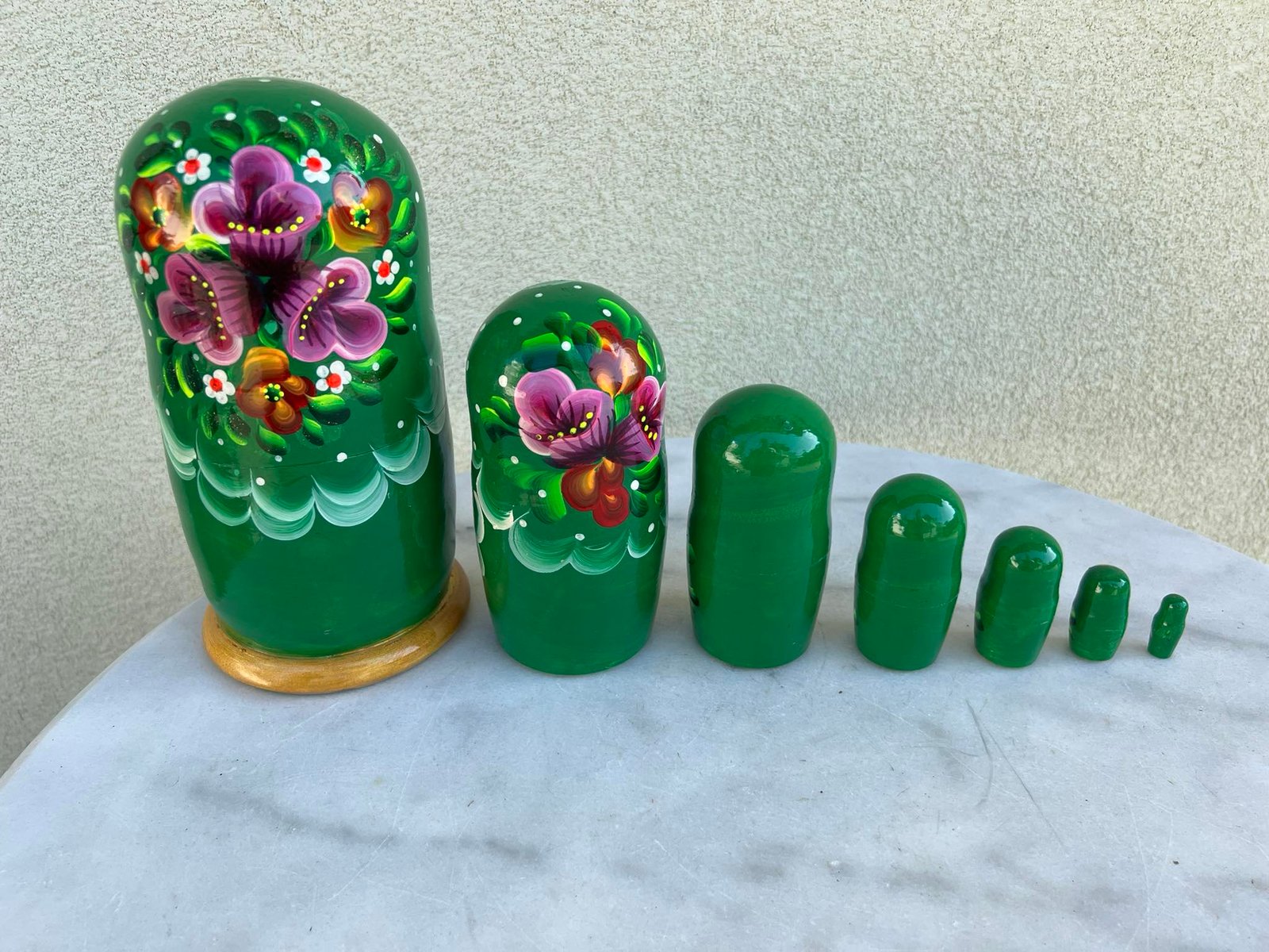 Matrioška tapyta 7 dalių, medinė, sovietinė, tarybinių laikų. Aukštis 25 cm. Kaina 83