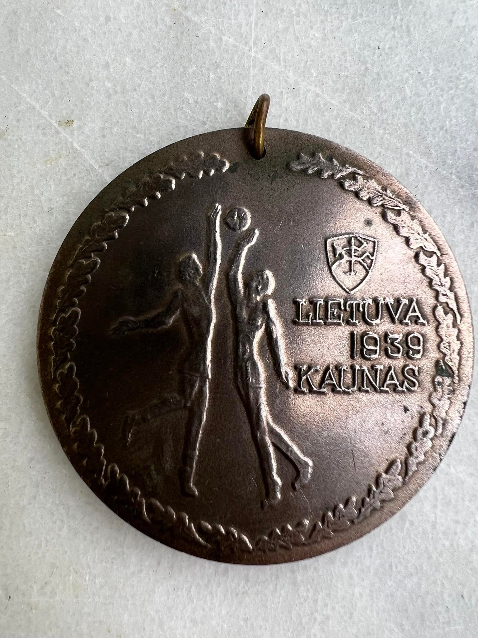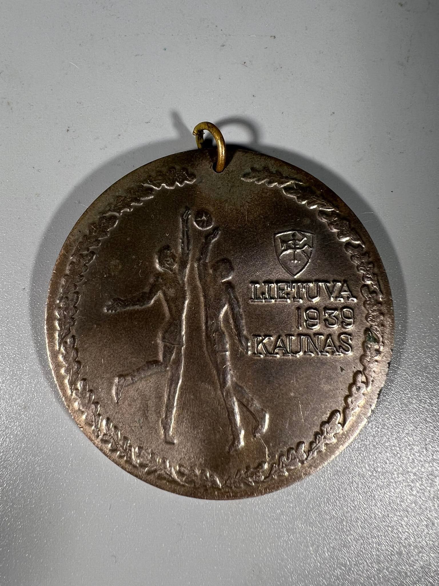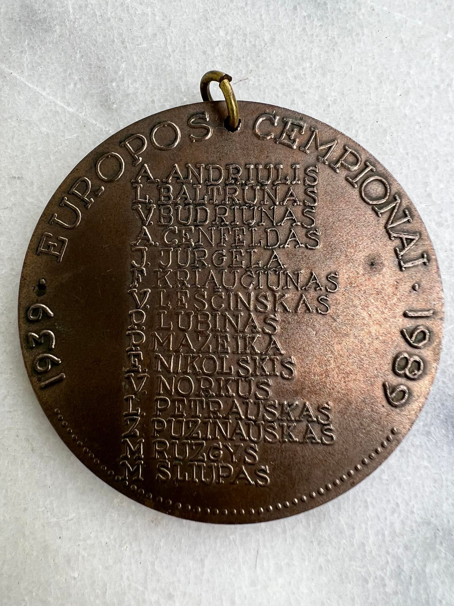 Medalis jubiliejinis Lietuva 1939 Kaunas. 1939 Europos čempionai 1989. Skersmuo 6 cm. Kaina 53