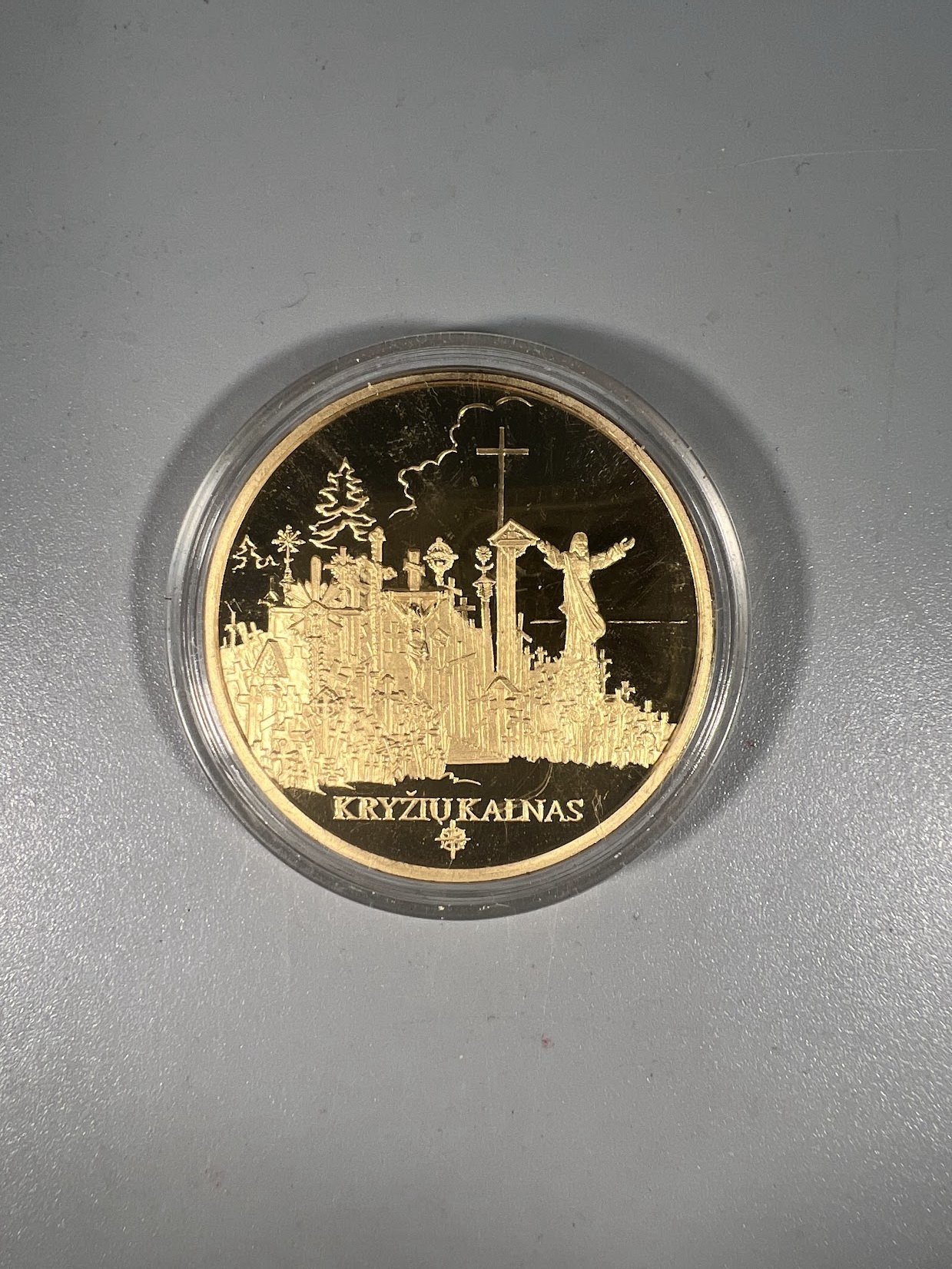 Medalis suvenyrinis atminimo lietuviškas Kryžių kalnas. Skersmuo su kapsule 43 mm. Kaina 16