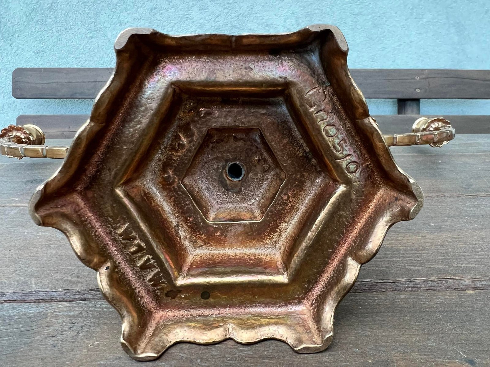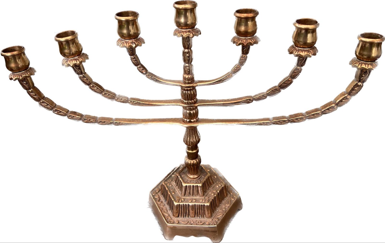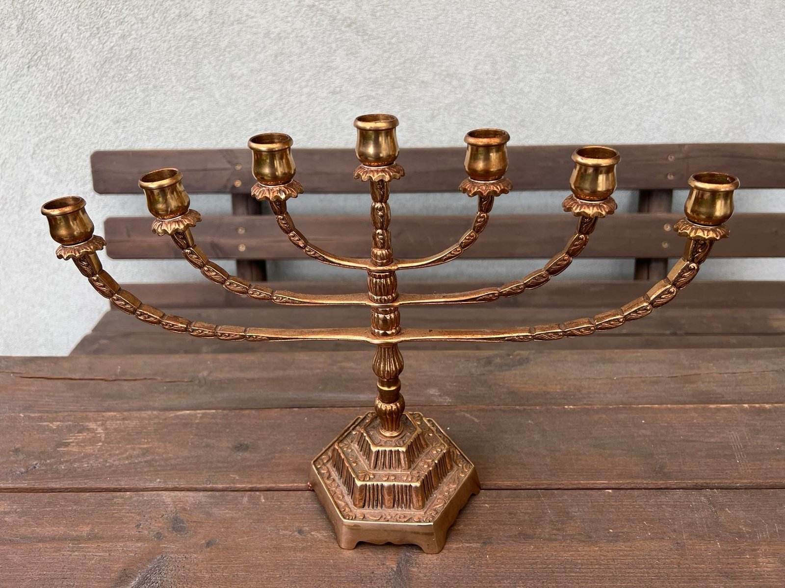 Menora, žvakidė bronzinė 7 šakų. MALM. GNOSJO. Svoris 2 kg. Kaina 68