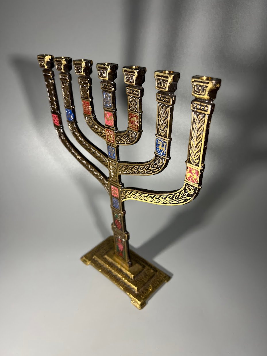 Menora žvakidė žalvarinė, Jerusalem, Jeruzalės suvenyras, septynšakė, judaikos stilius, Izraelis. Kaina 87