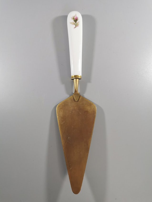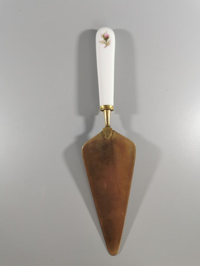 Mentelė tortui, pyragaičiams antikvarinė, porcelianine rankena. Ilgis 25 cm. Kaina 28
