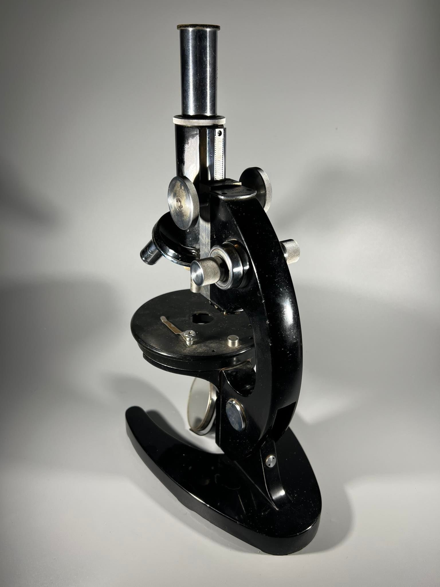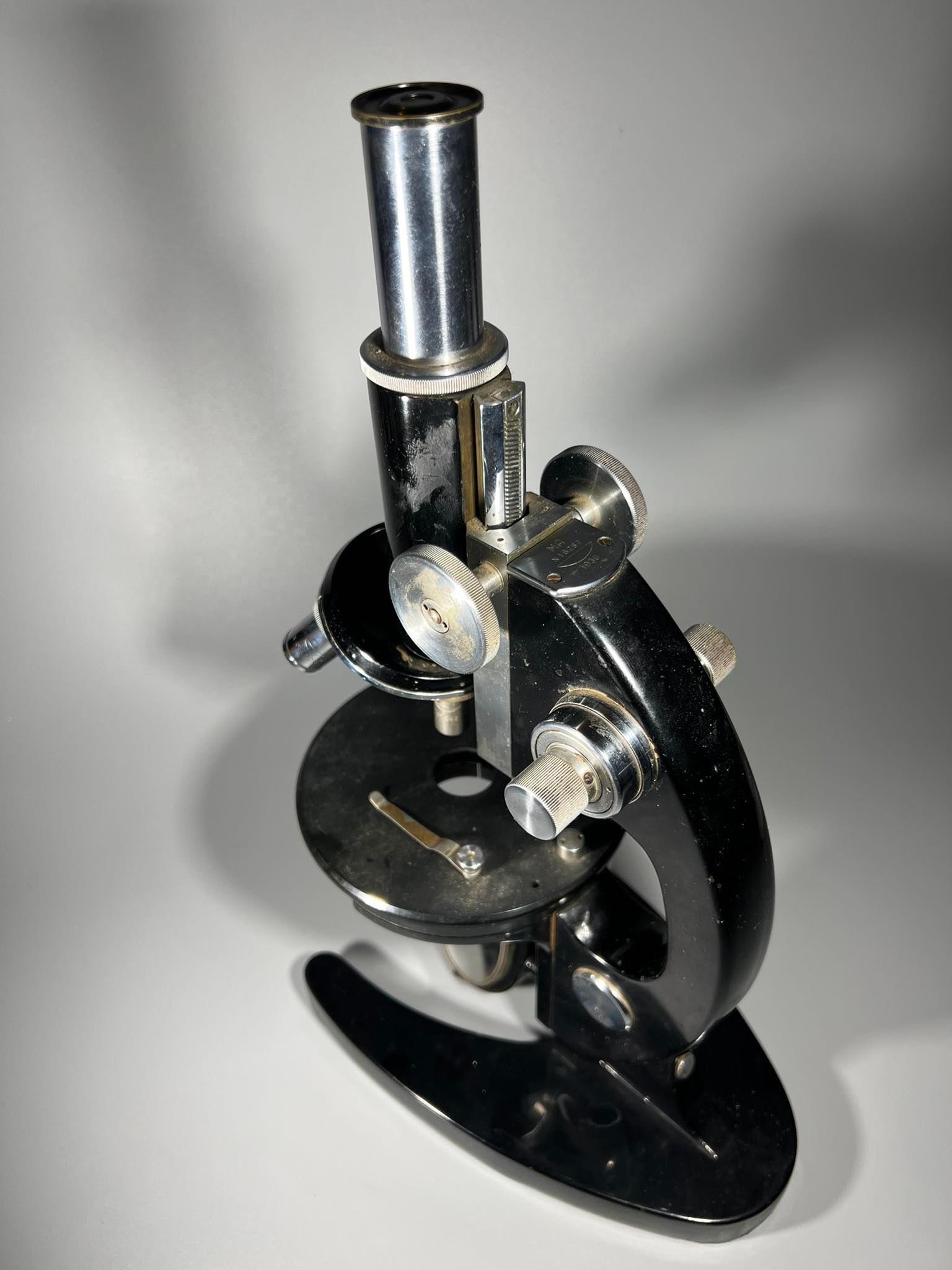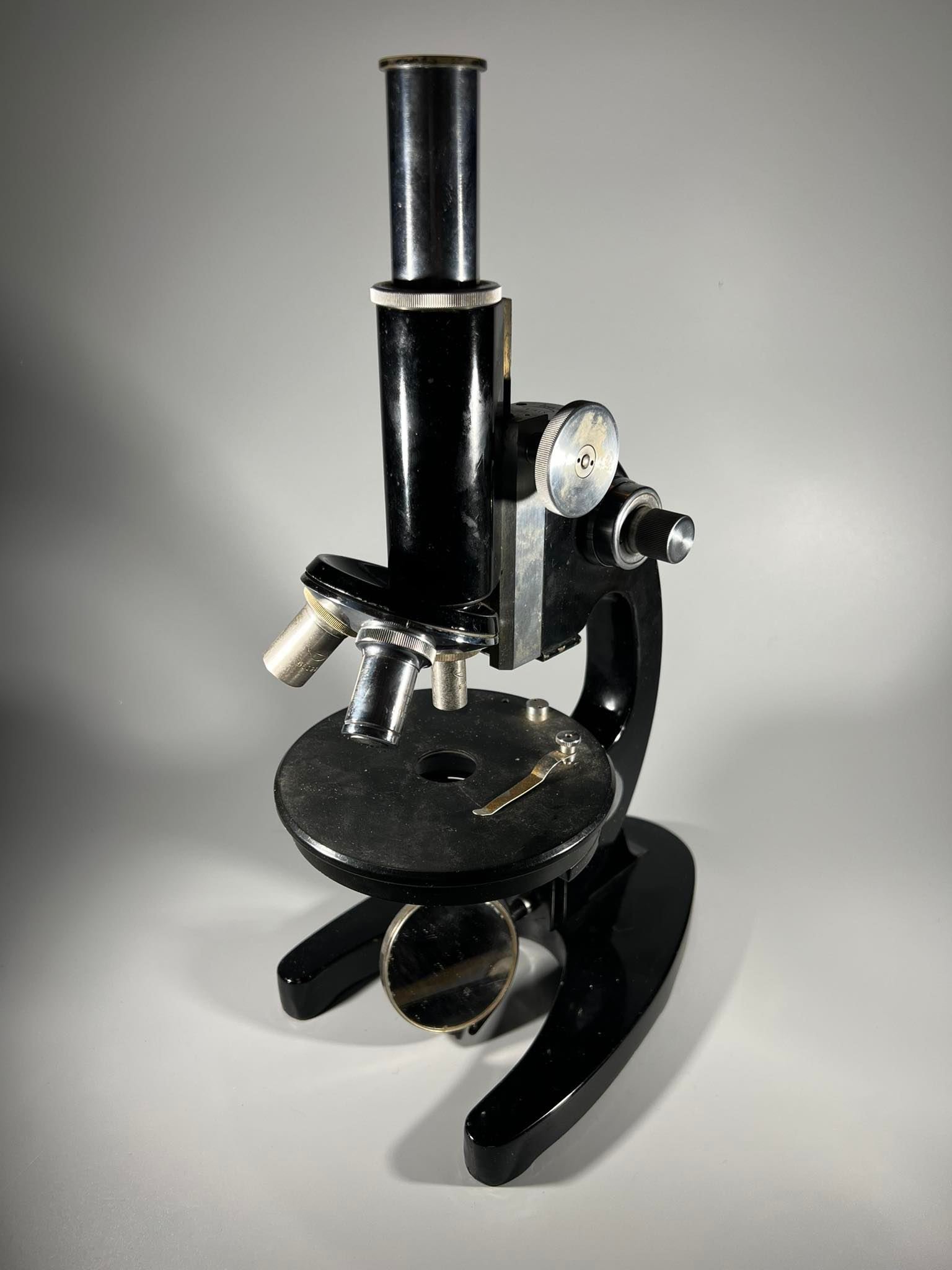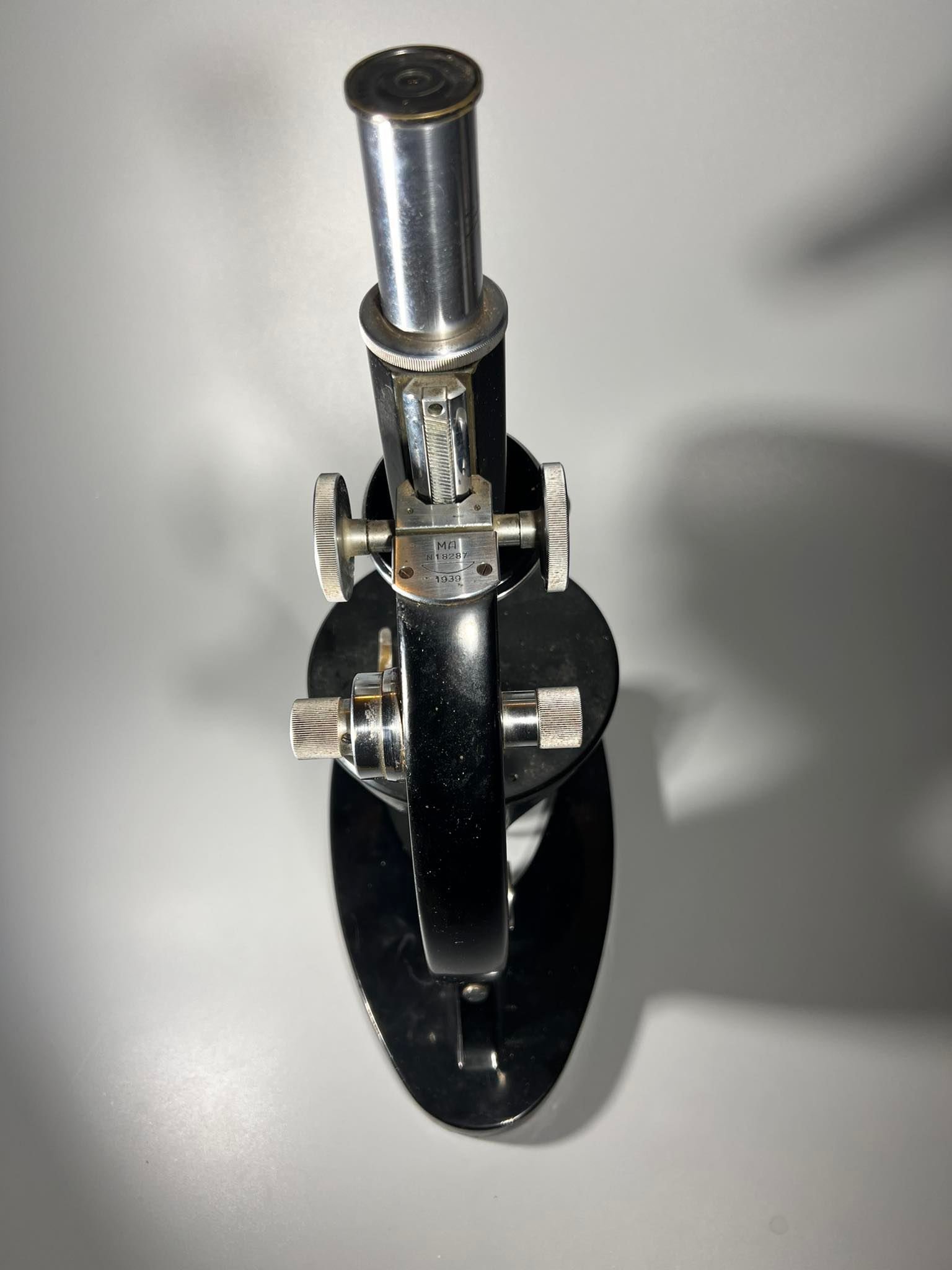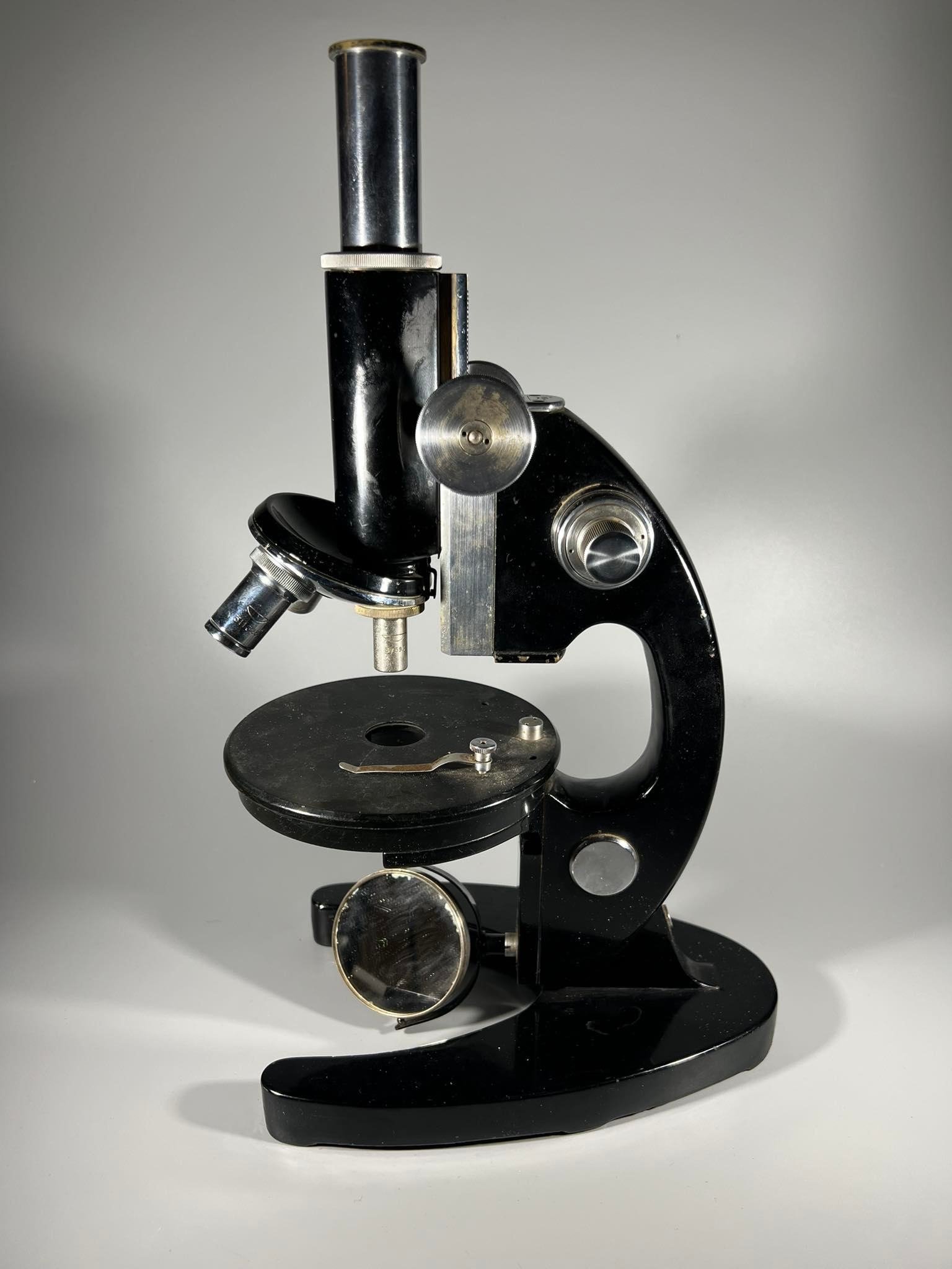 Mikroskopas antikvarinis, veikiantis. Svoris 4 kg. 1939 m. Kaina 243