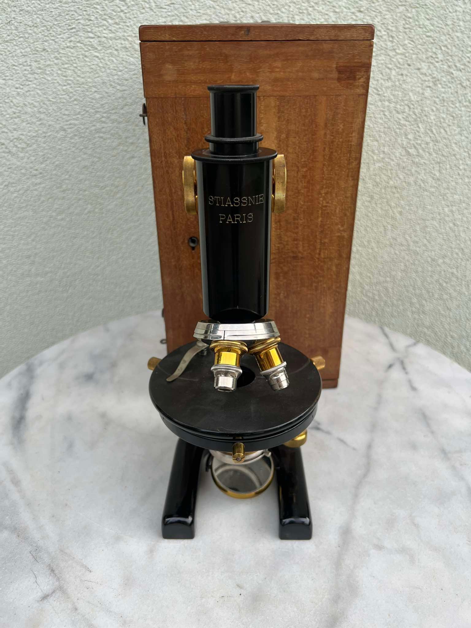 Mikroskopas su dėže antikvarinis Stiasnne Paris France microscope. Veikiantis. Kaina 368