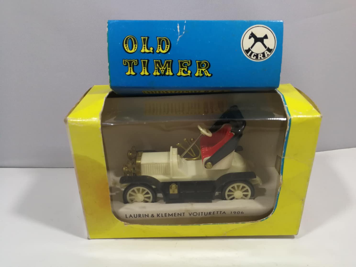 Modeliukas Laurin Klement Voituretta 1906. Made in Czechoslovakia. Dėžutės dydis: 9 x 12 x 5 cm. Kaina 21