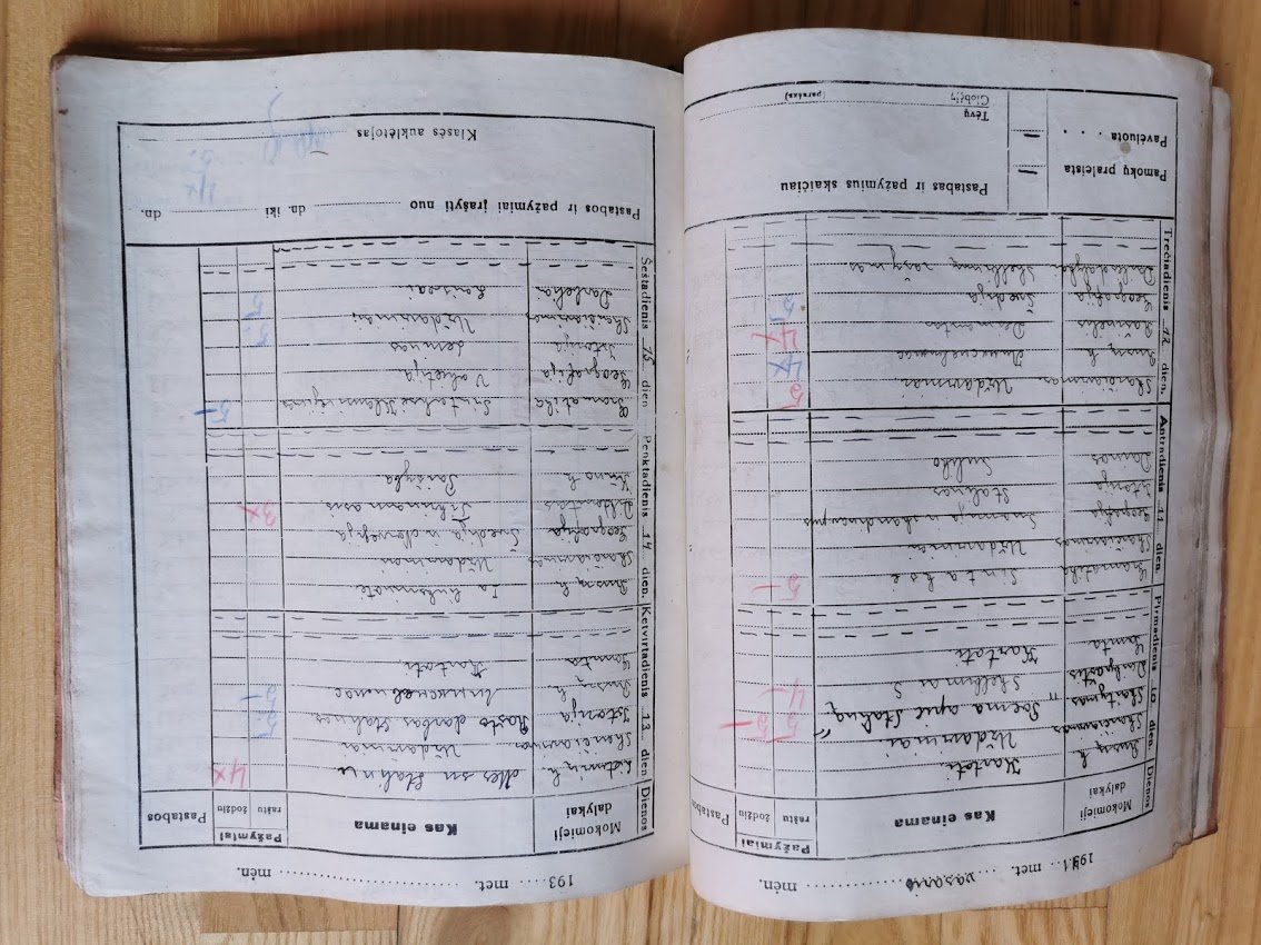 Mokinio Dienynas. 1940/41 mokslo metams. Dydis: 17 x 21 cm. Kaina 32