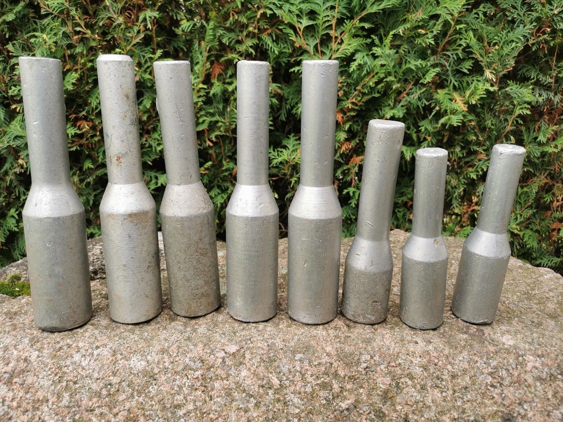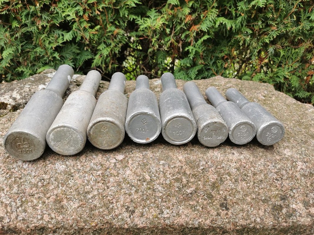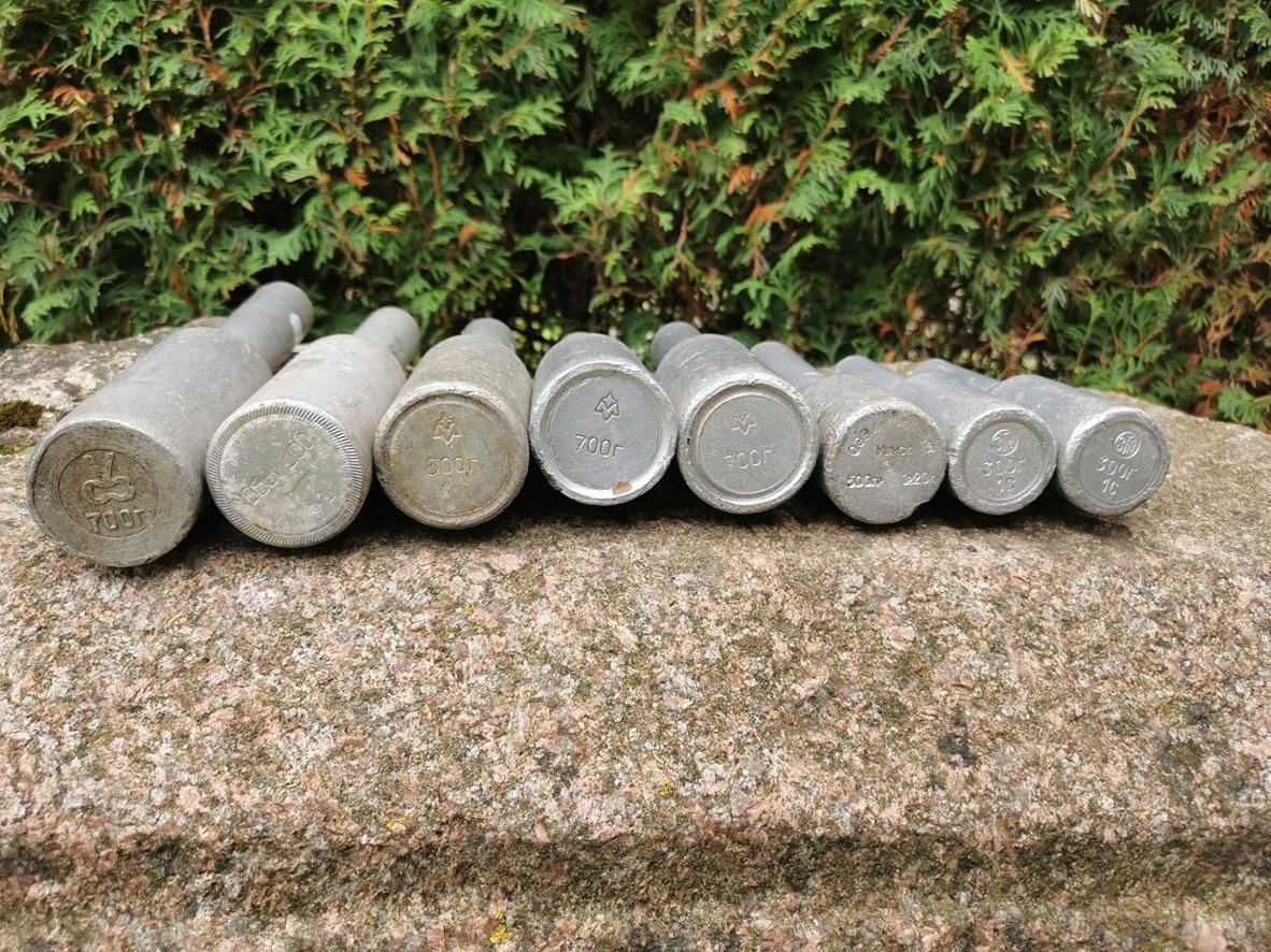 Mokyklinės metalinės granatos, tarybinės. LIKO 1 vnt. Svoris: 700 grbei 300 gr. Naudotos tarybiniais laikais vidurinėse mokyklose, fizinio lavinimo pamokose – normatyvo „Granatos metimas” atsiskaitymui. Kaina 13