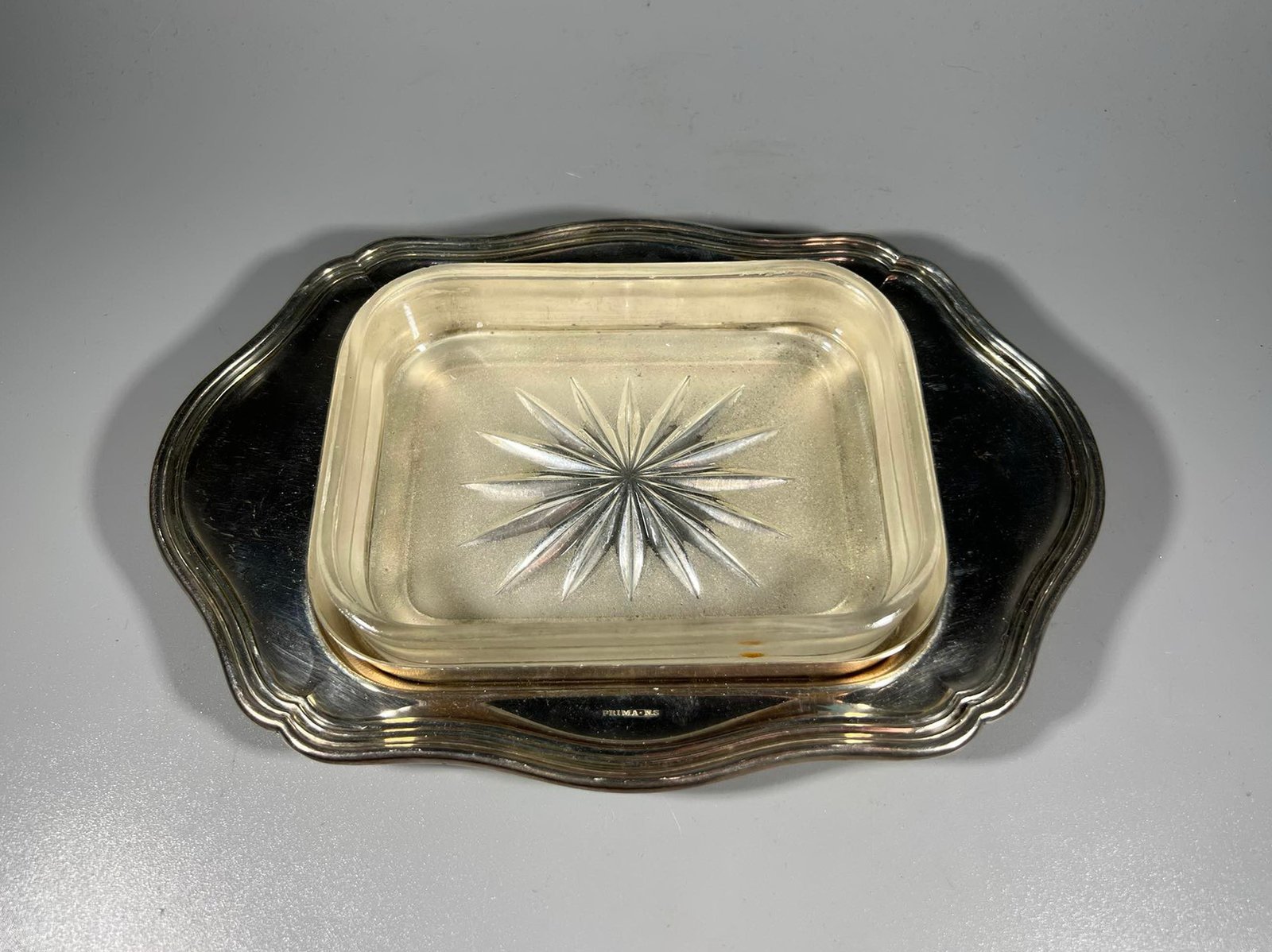 Muilinė ar indas antikvarinis, sidabruotas. Prima N.S. Ilgis 19, plotis 13, aukštis 3 cm. Kaina 38