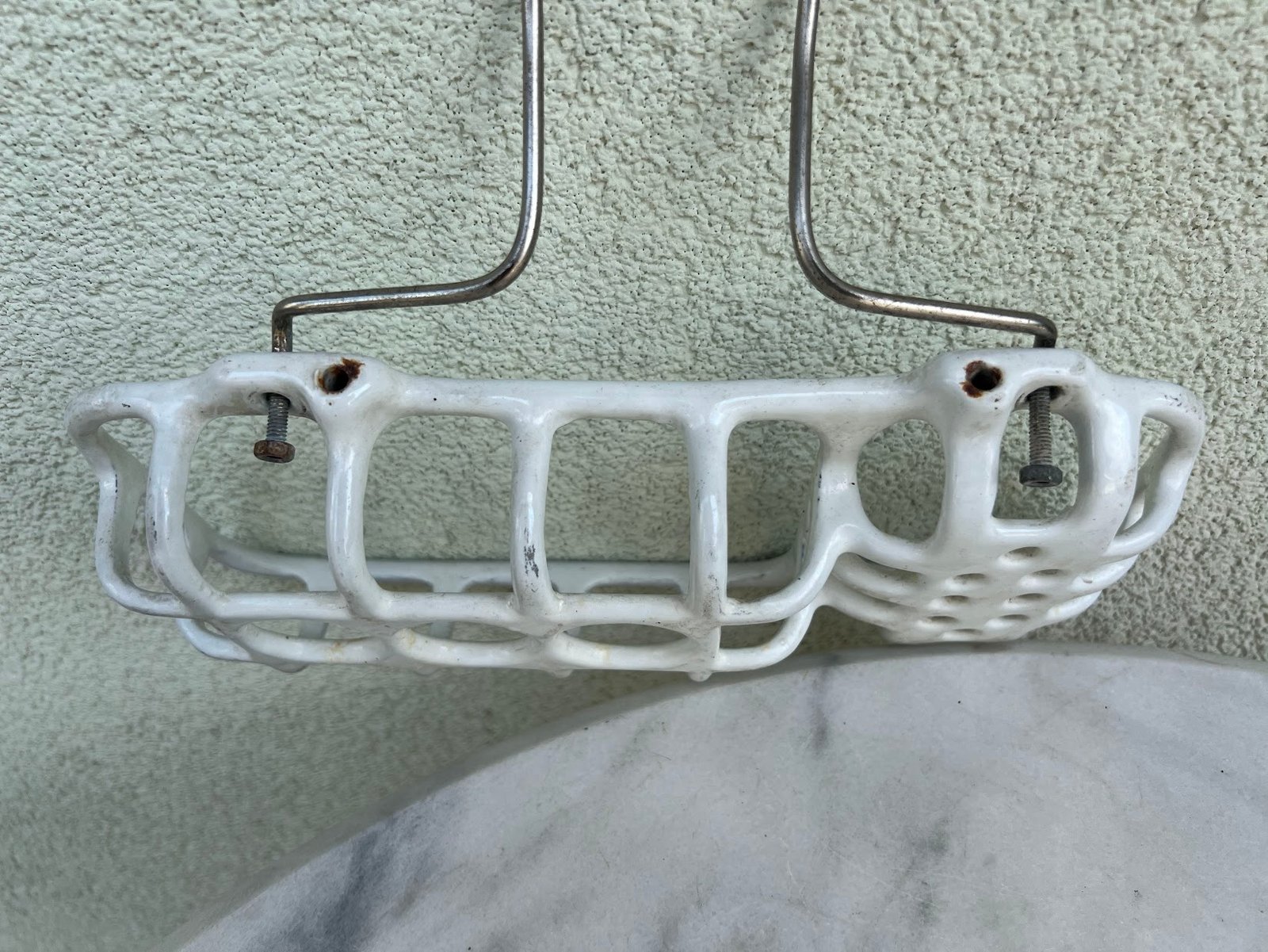 Muilinė ketaus, špižinė, emaliuota antikvarinė, prancūziška. Pakabinama ar prisukama prie sienos. Kaina 87