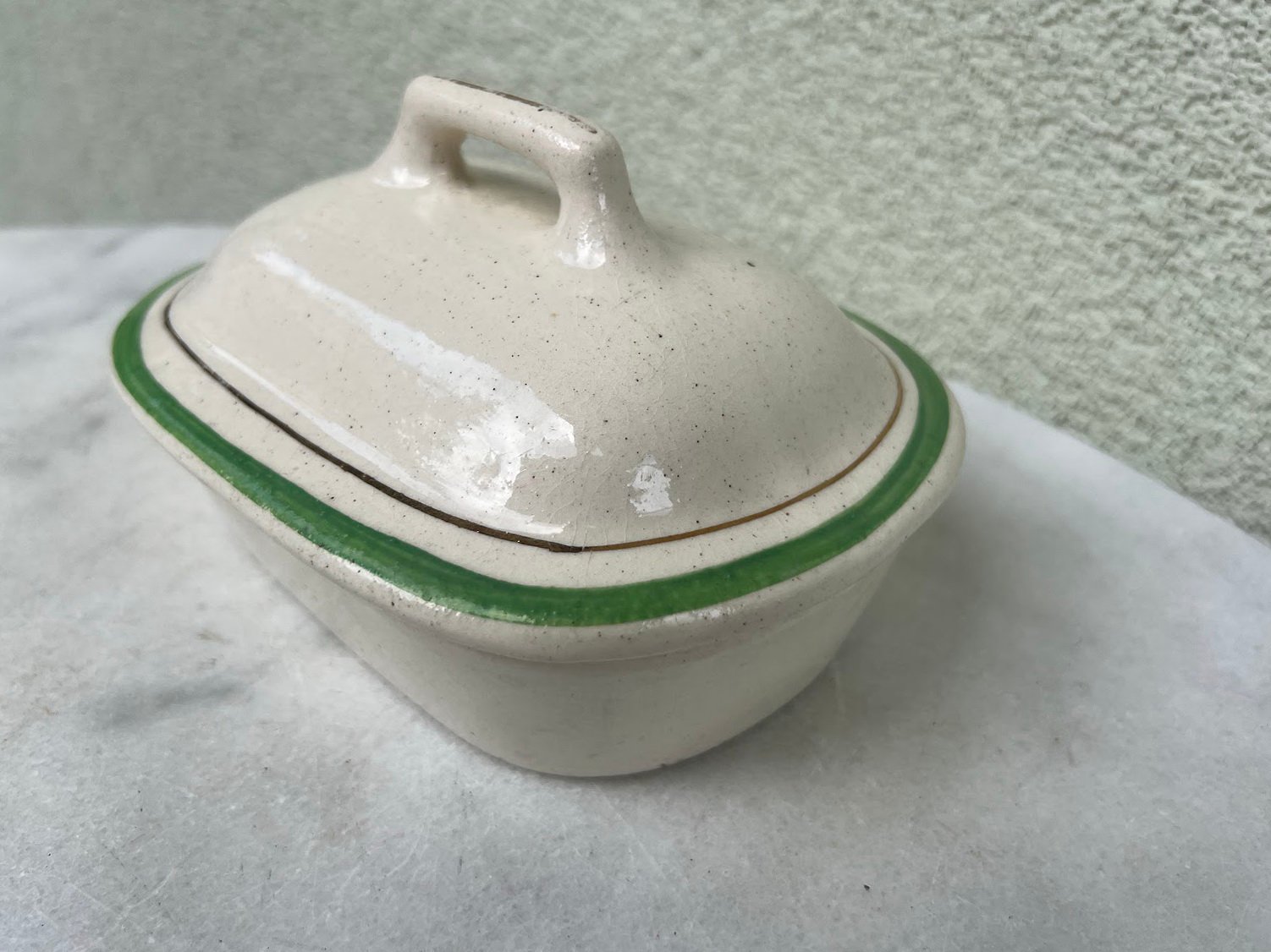 Muilinė su dangčiu antikvarinė keraminė, glazūruota dėžutė. Kaina 23