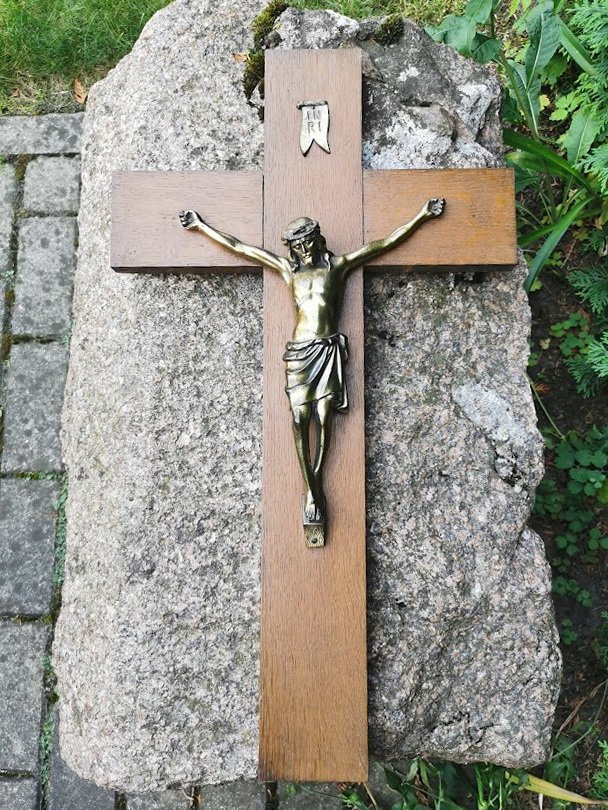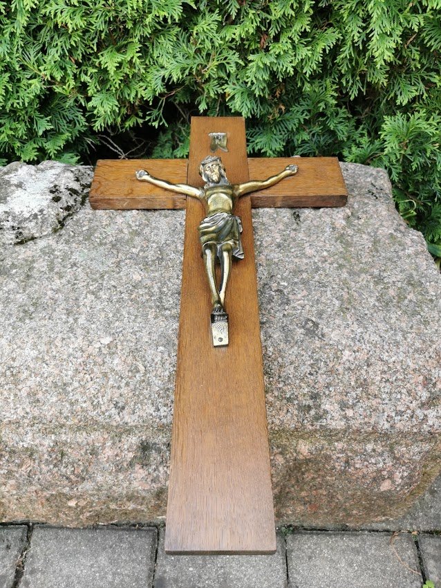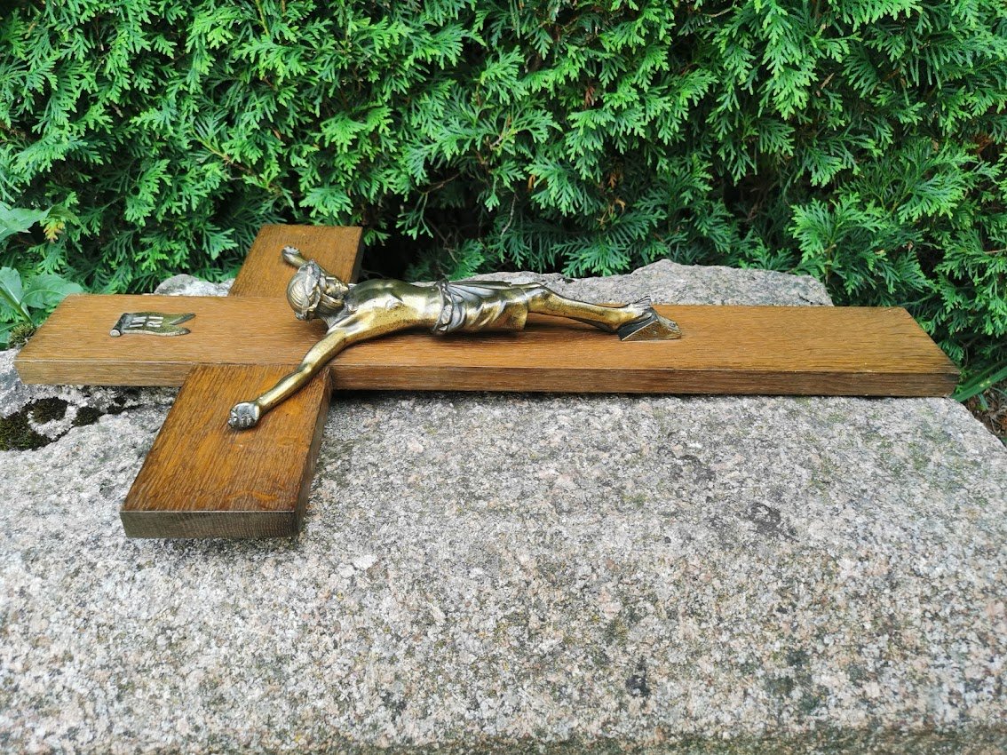 Nukryžiuotasis Kristaus figūra, Krucifiksas. Metalinis, Dydis: 35 x 60 cm. Kaina 68