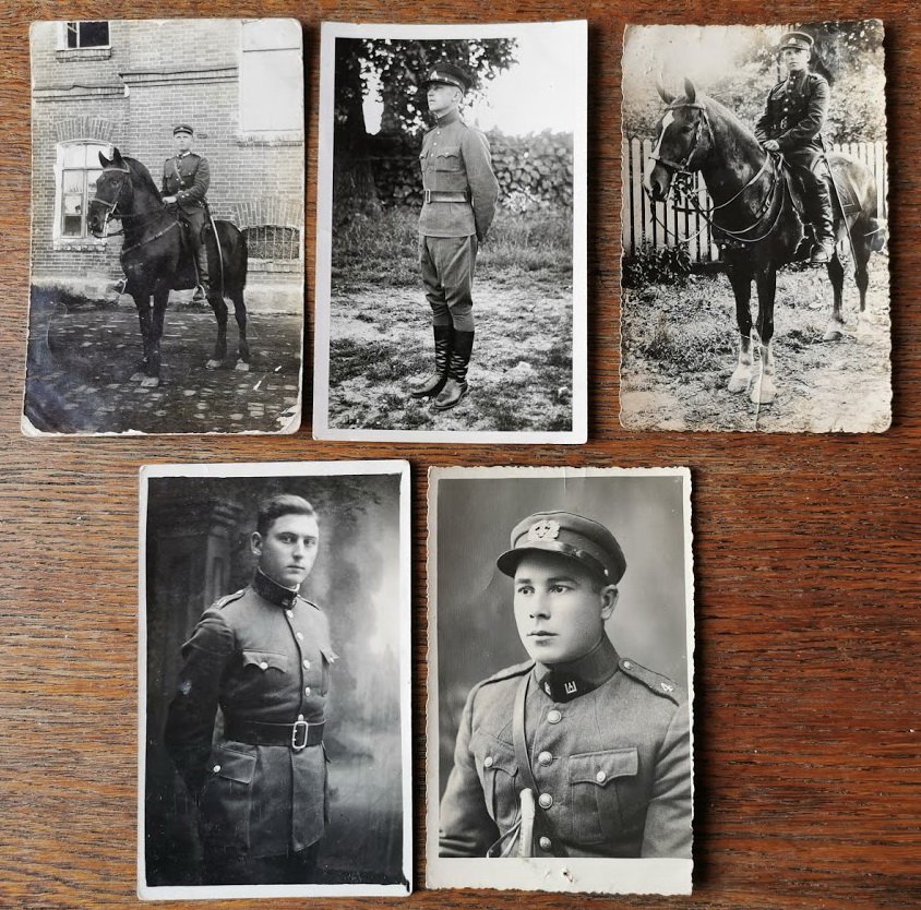 Nuotraukos Lietuvos tarpukario kariškių. LIKO TIK paskutinė viršut. eilėje ant žirgo ir apatinė. Kaina 5