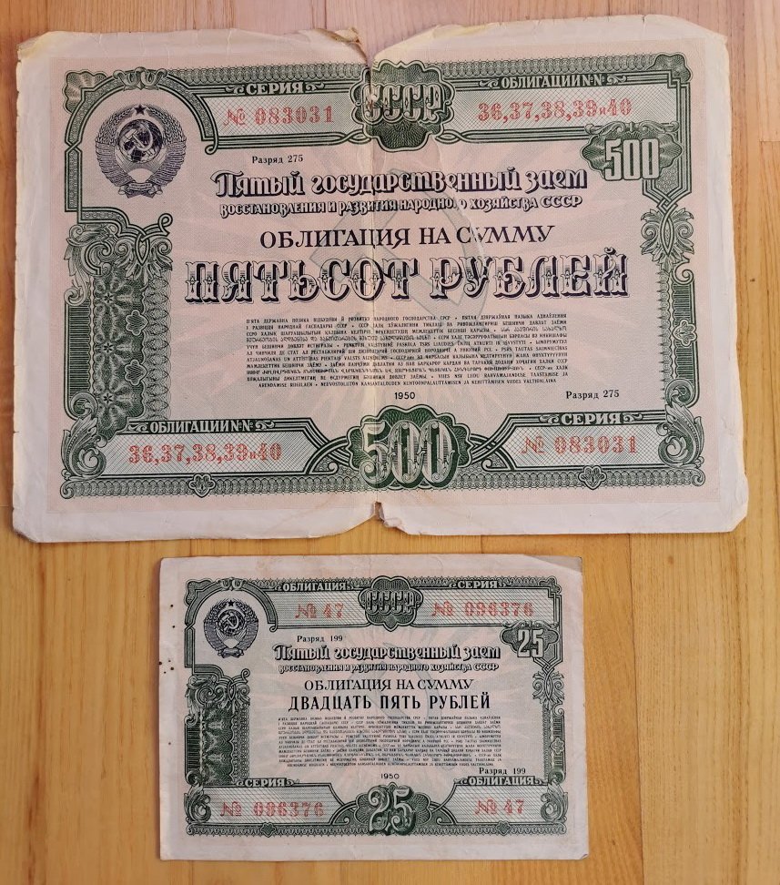 Obligacijos tarybinės. 1950 m. Soviet bonds. LIKO TIK APATINĖ Kaina 3