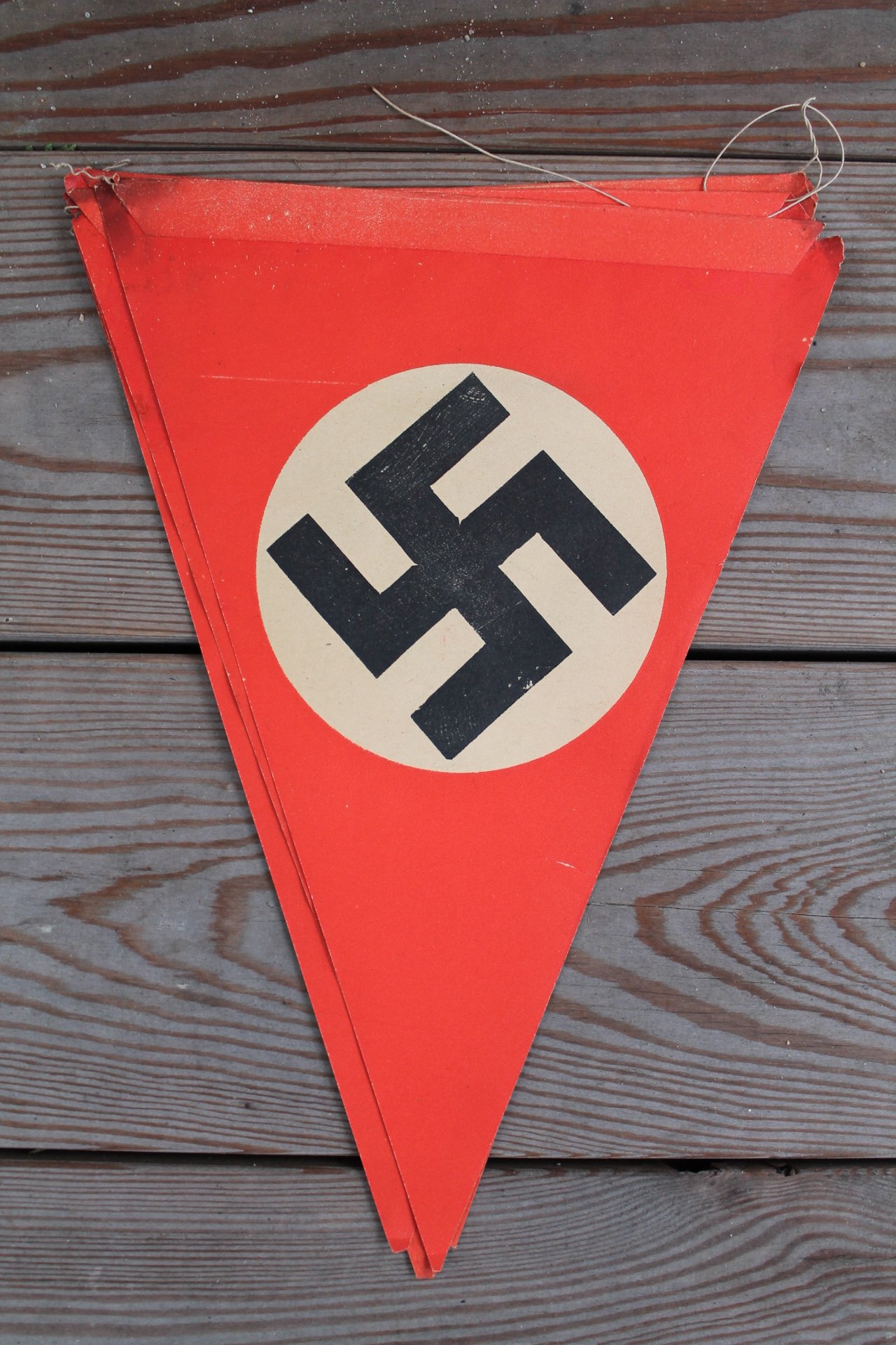 Originalios Trecio Reicho popierines gaireles. 5 vnt., sujungtos. lot of five original Third Reich double sided paper pennants. Kaina 217 uz viska.