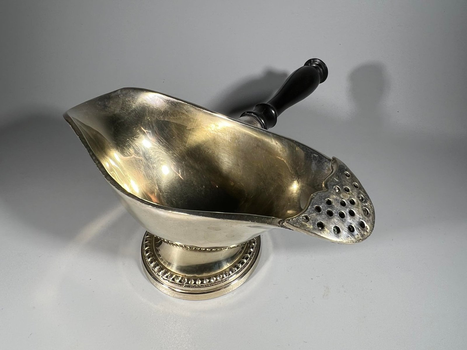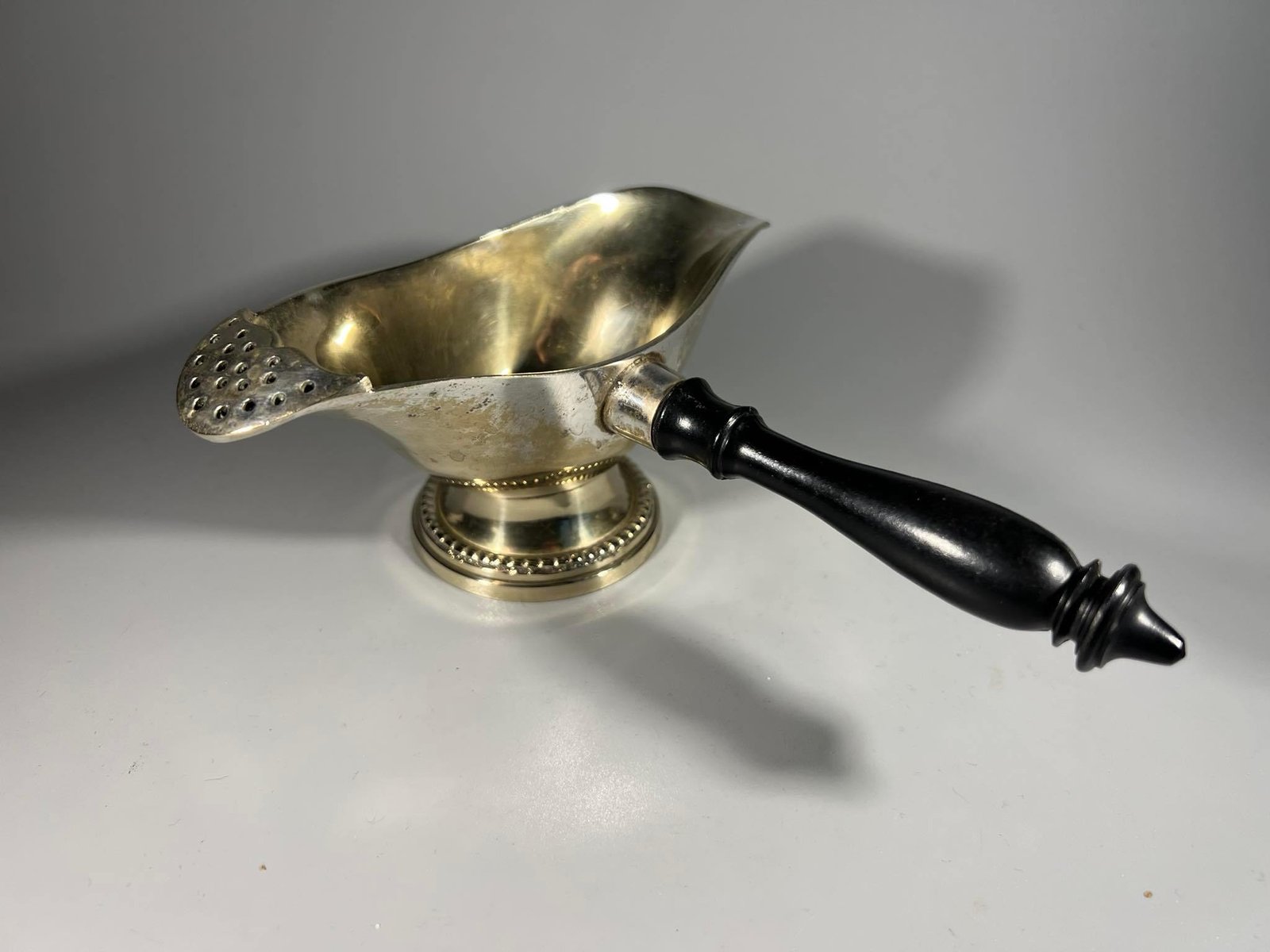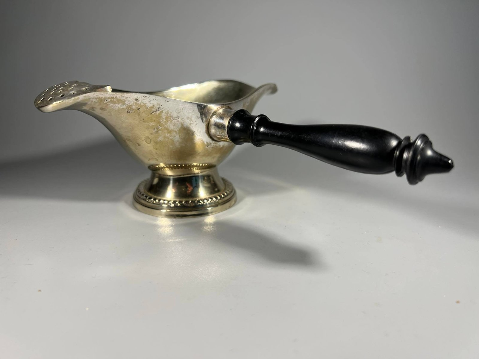 Padažinė medine rankena antikvarinė. Ilgis 18, padažinės plotis 7, ilgis 16, aukštis 7 cm. Kaina 28