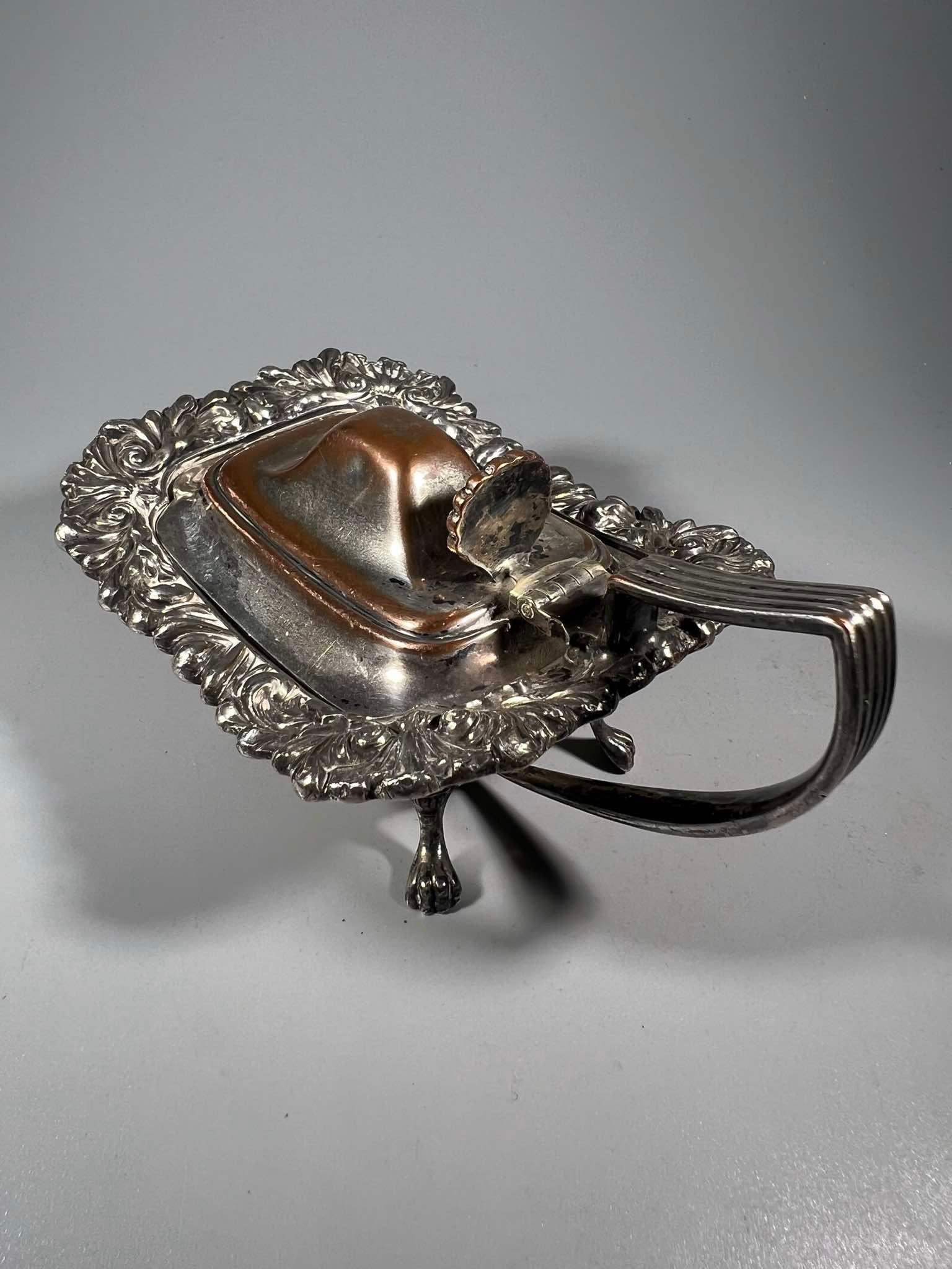 Padažinė, prieskoninė antikvarinė prancūziška, varinė, sidabruota. Aukštis 7, ilgis su rankena 14, plotis 9 cm. Kaina 43