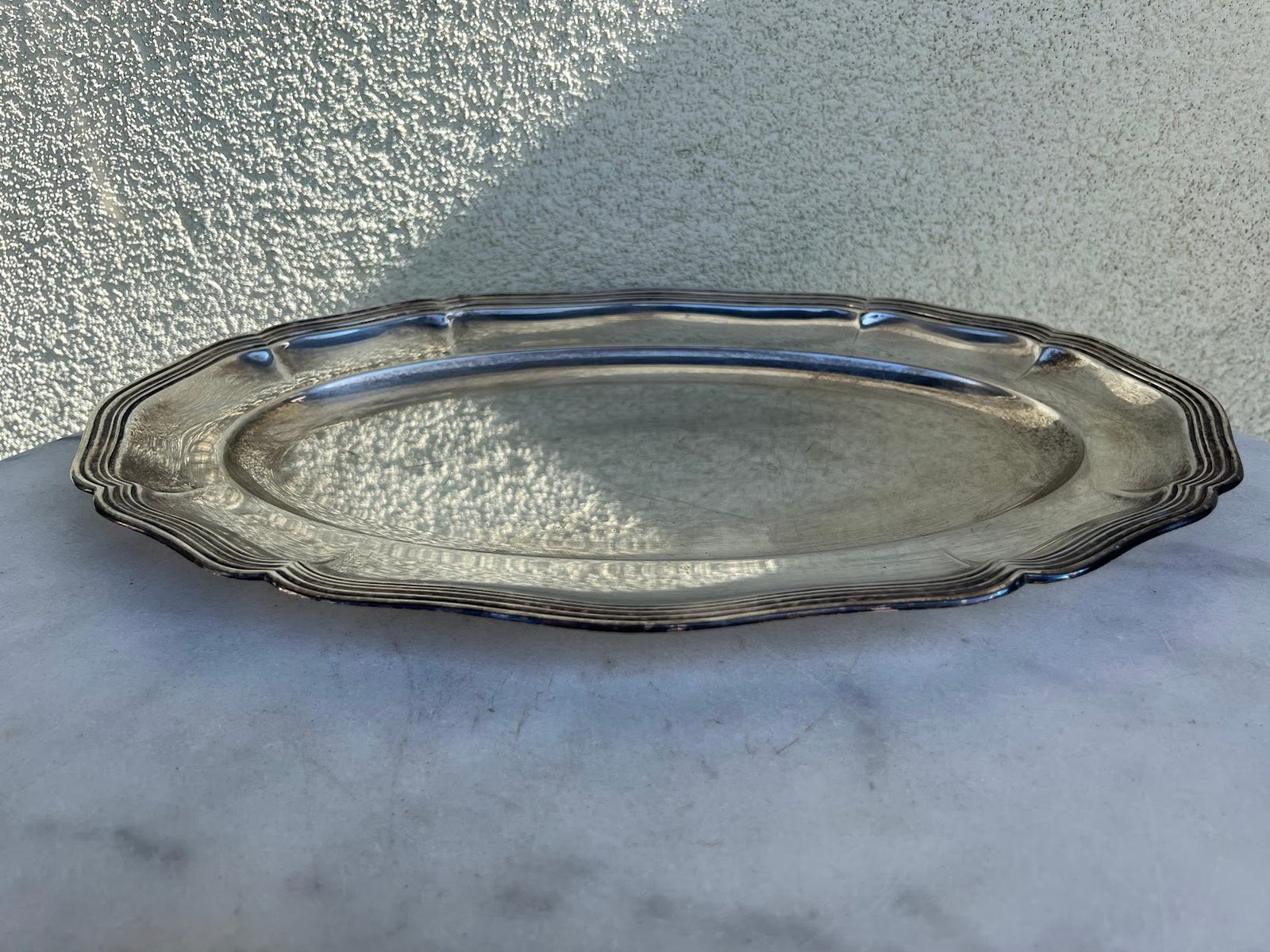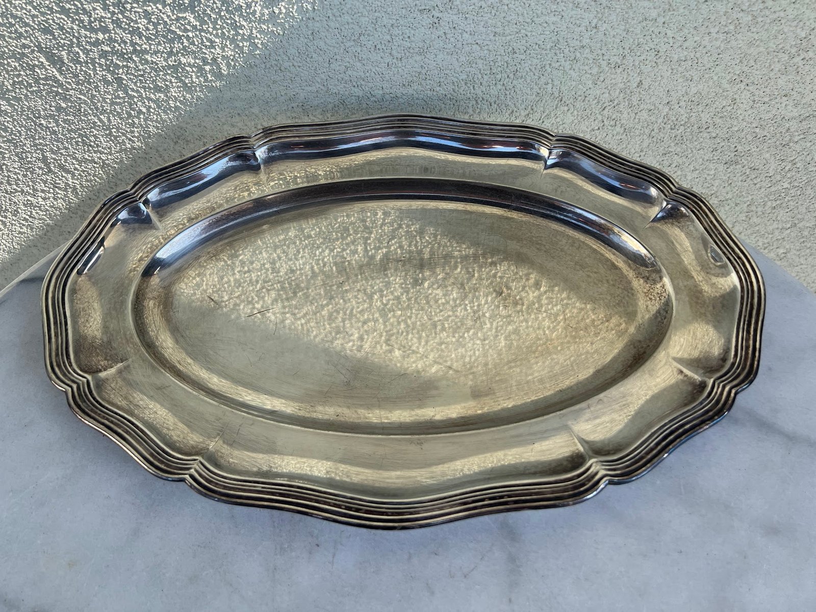 Padėklas antikvarinis, sidabruotas. Dydis: 26 x 40 cm. Kaina 42