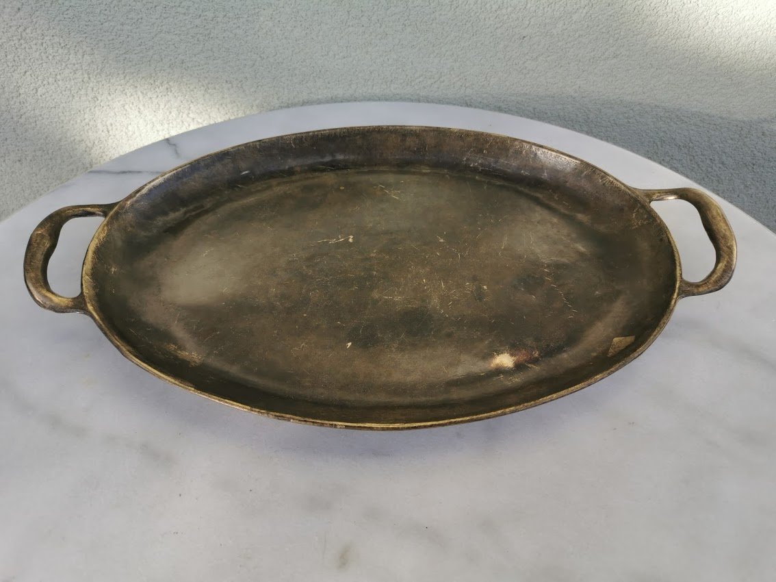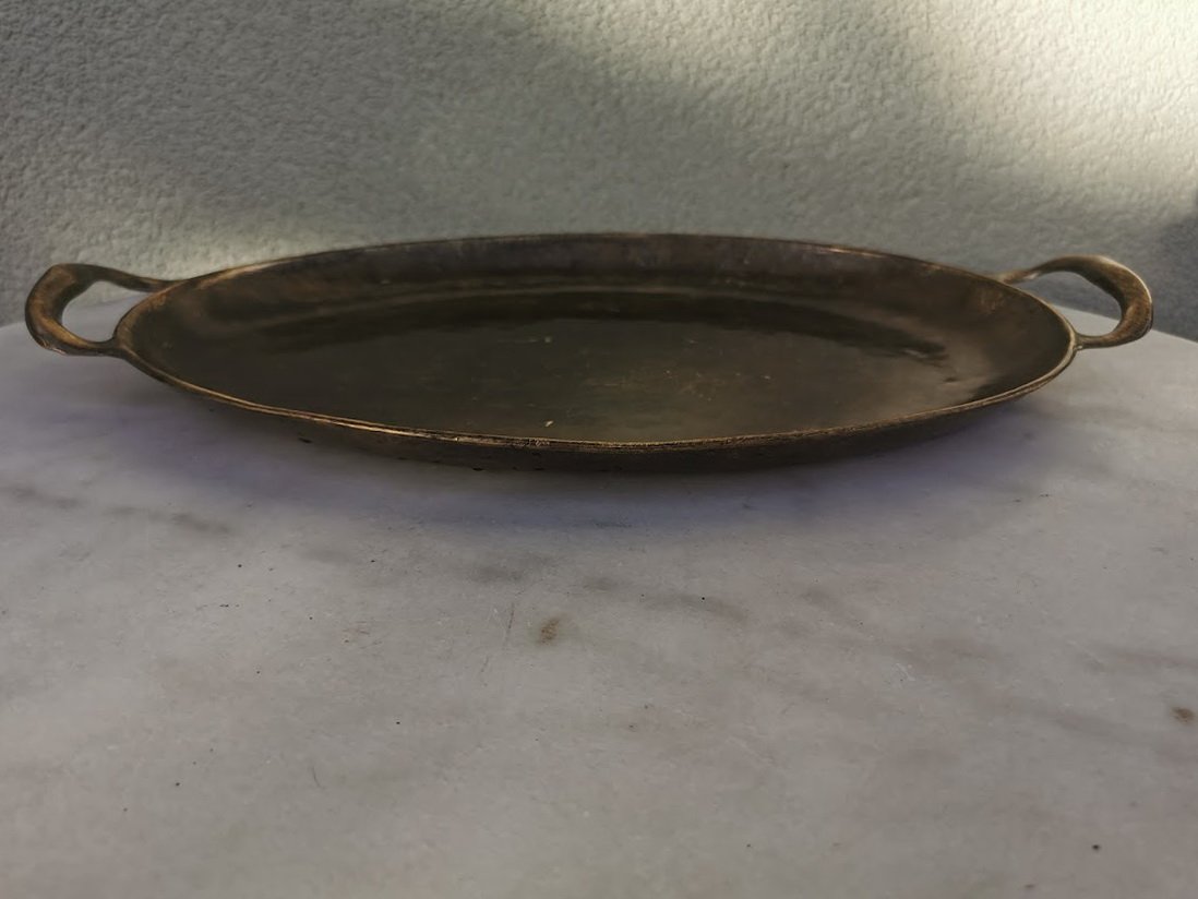 Padėklas bronzinis. Svoris 1,1 kg. Ilgis 39, plotis 23 cm. Kaina 33