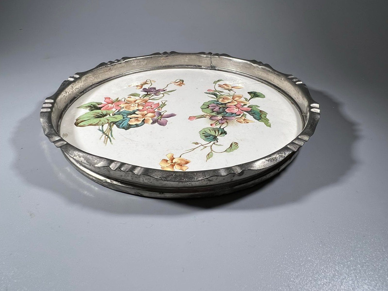Padėklas glazūruotas alaviniu apvadu antikvarinis. Kaina 23