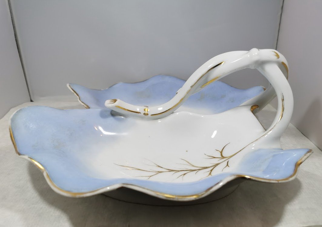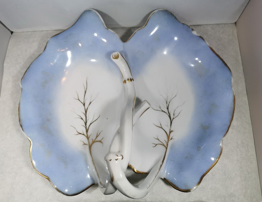 Padėklas, indas dviejų dalių su rankena, porcelianinis, antikvarinis. Kaina 23