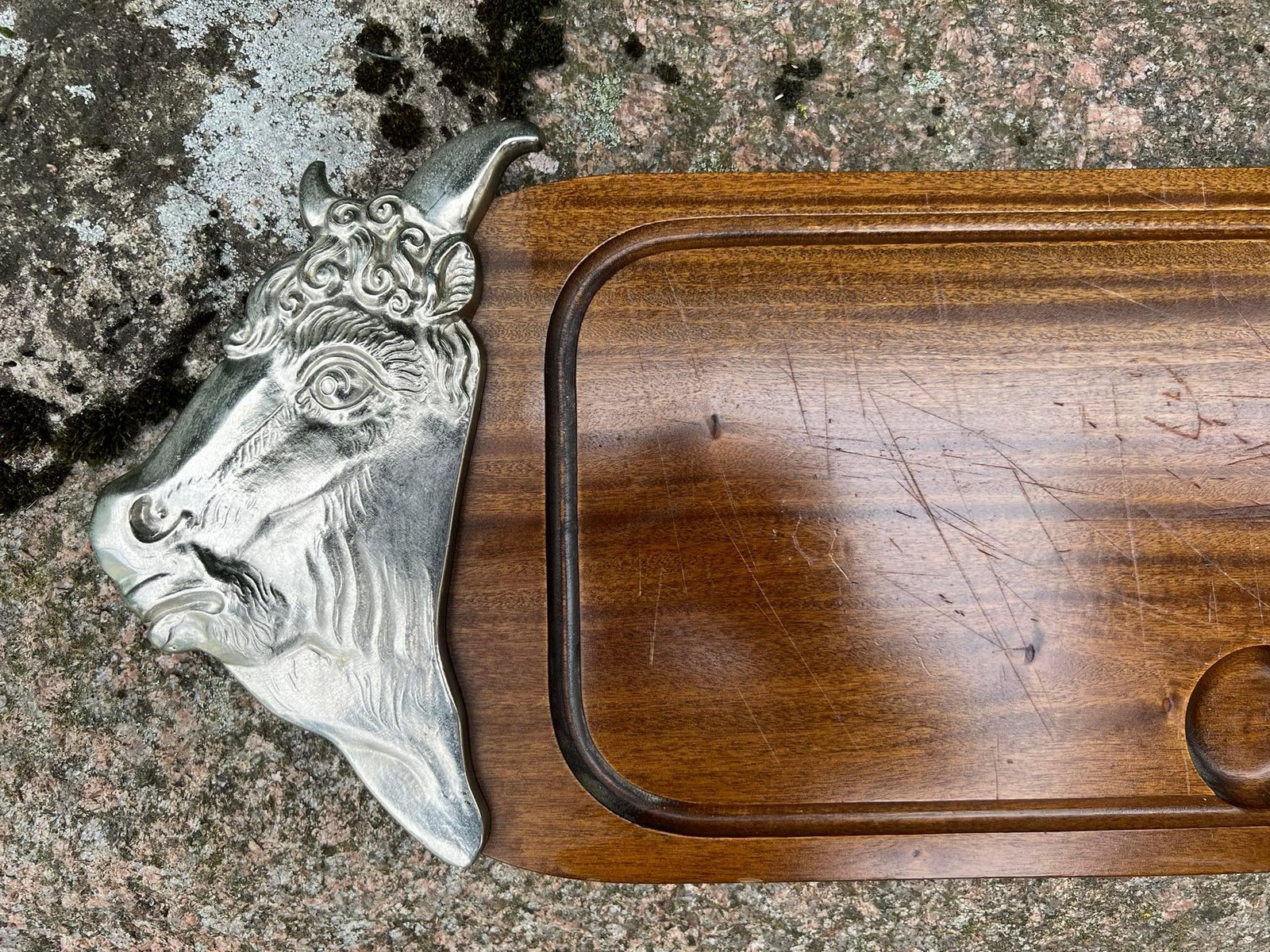 Padėklas Jautis, didelis, vintažinis. Dydis: 22 x 57 cm. Kaina 56