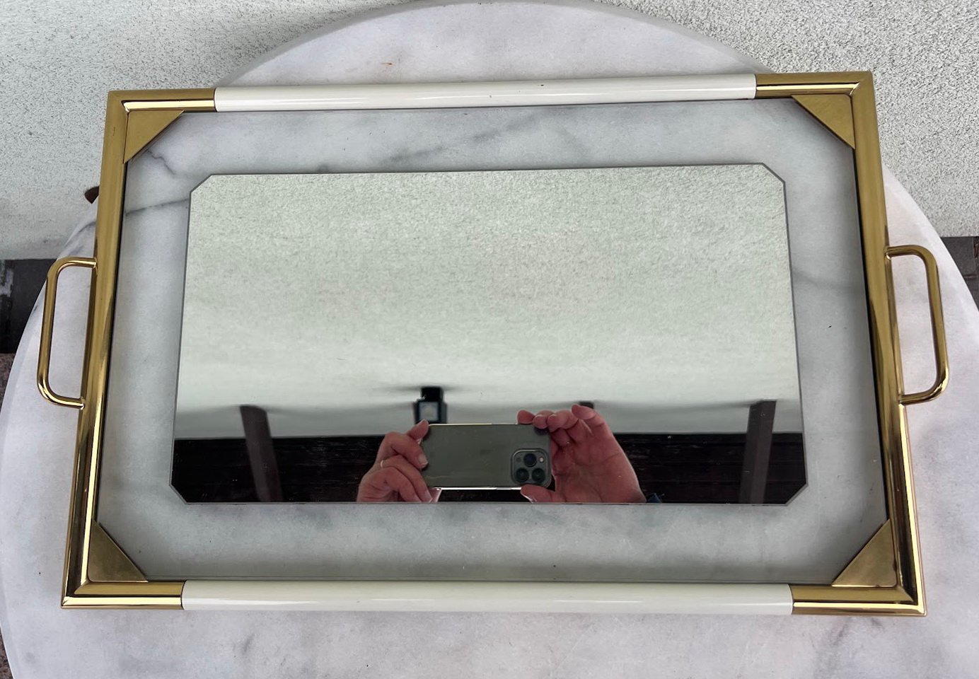Padėklas keturkampis su rankenėlėmis bei veidrodžiu vokiškas, vintažinis. Kaina 78