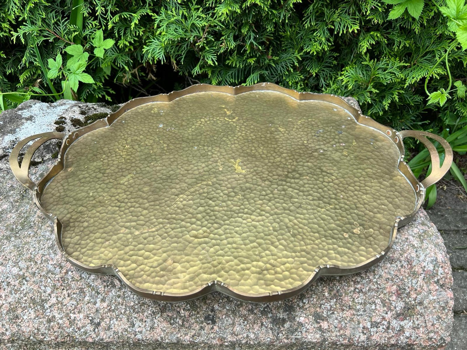 Padėklas masyvus, su rankenomis, didelis, žalvarinis, antikvarinis. Kaina 53