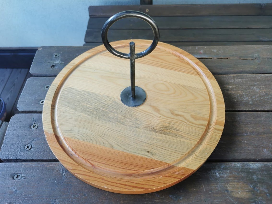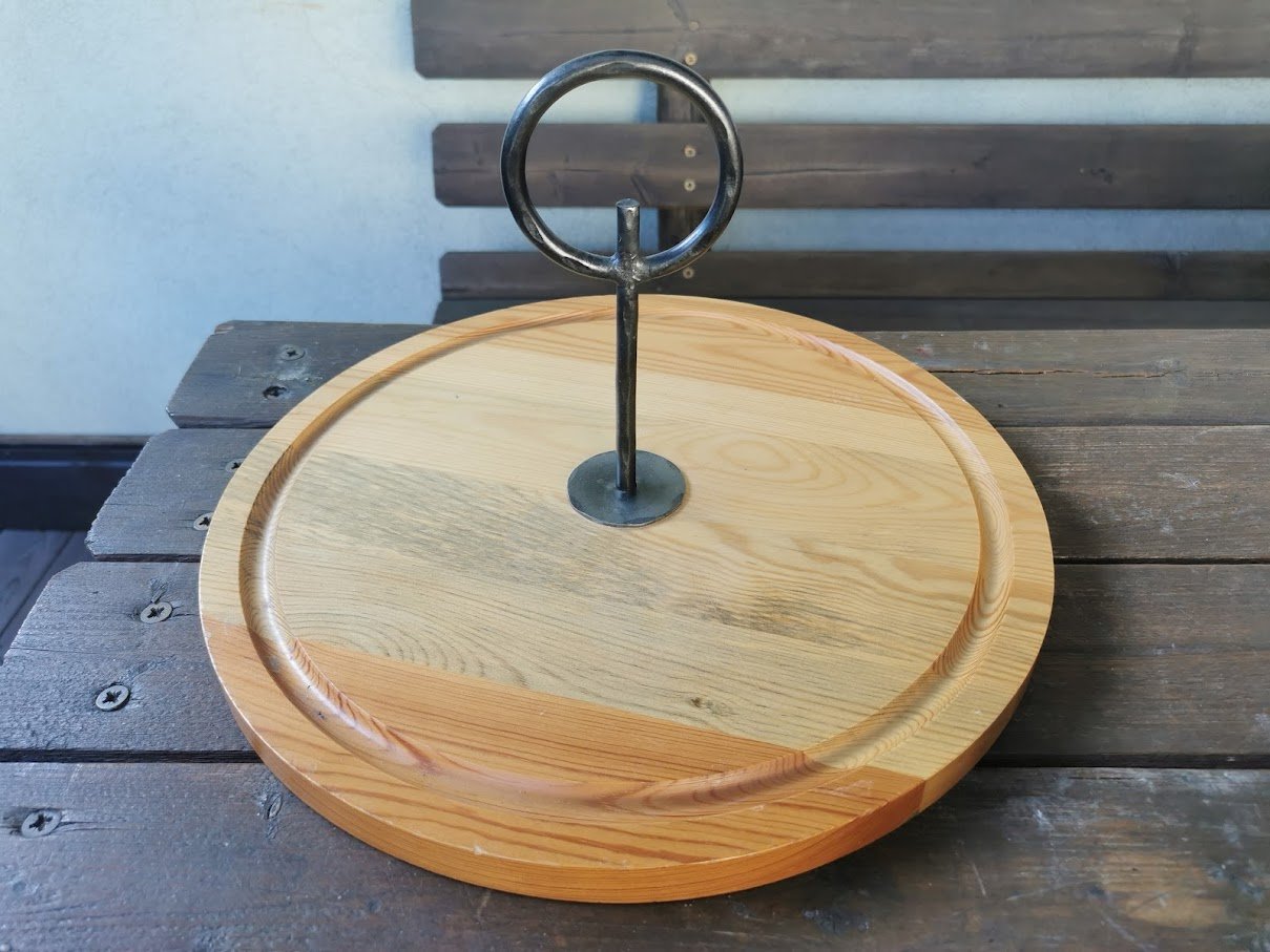 Padėklas medinis, sūrio serviravimo lėkštė. Skersmuo 35 cm. Kaina 26