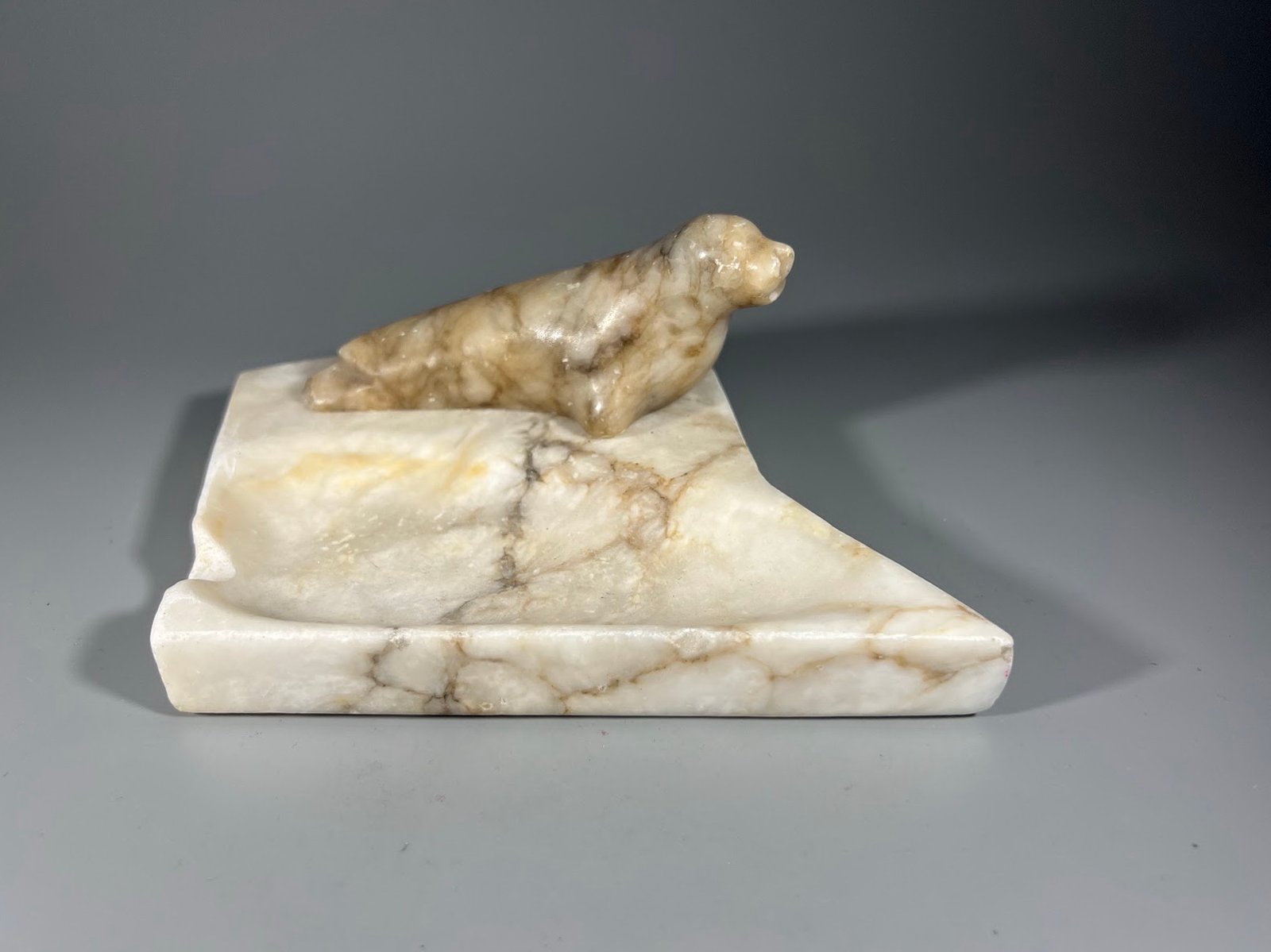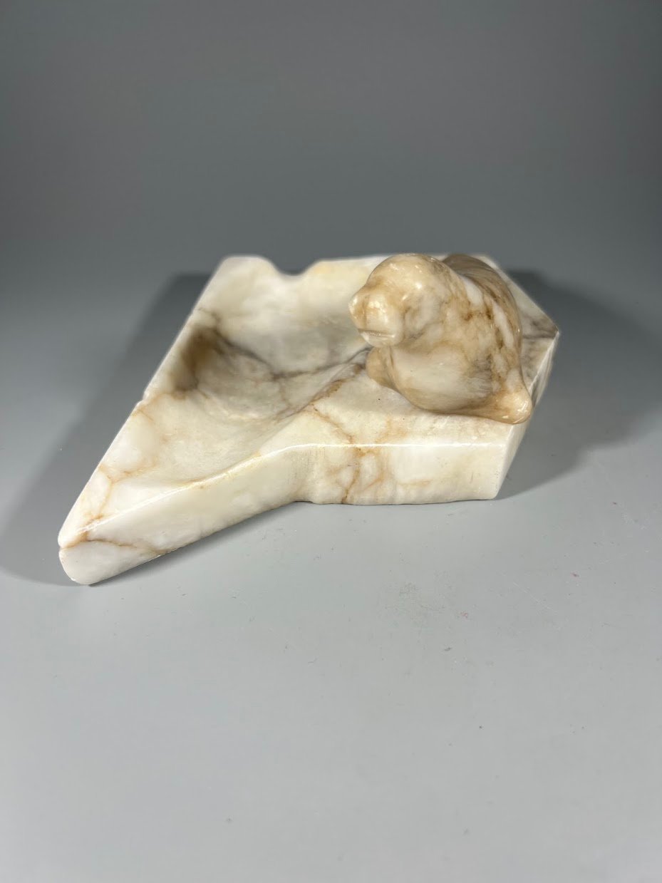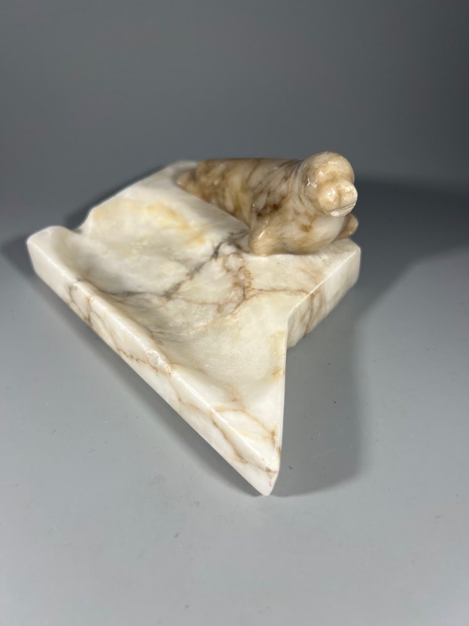Padėklas, peleninė akmeninė su ruonio statulėle sovietinis, tarybinių laikų. Kaina 18