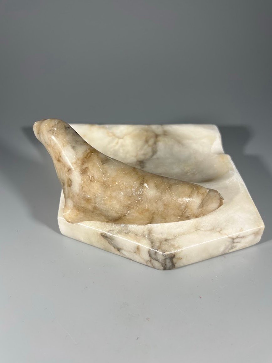 Padėklas, peleninė akmeninė su ruonio statulėle sovietinis, tarybinių laikų. Ilgis 15, plotis 10, aukštis 7 cm. Kaina 18