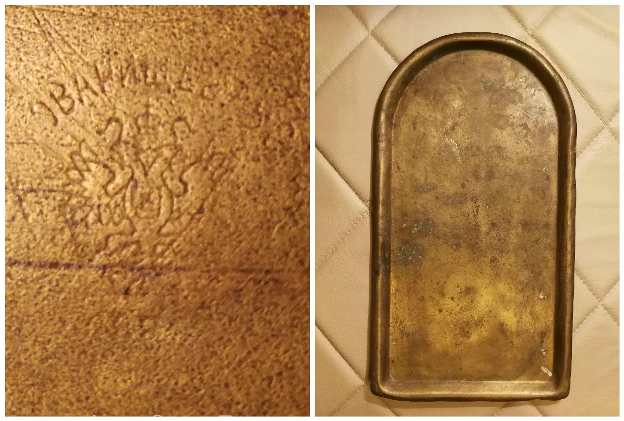 Padėklas samovaro antikvarinis, carinės Rusijos imperijos laikų. Dydis: 44 x 24 cm. Svoris 1 kg. Kaina 68