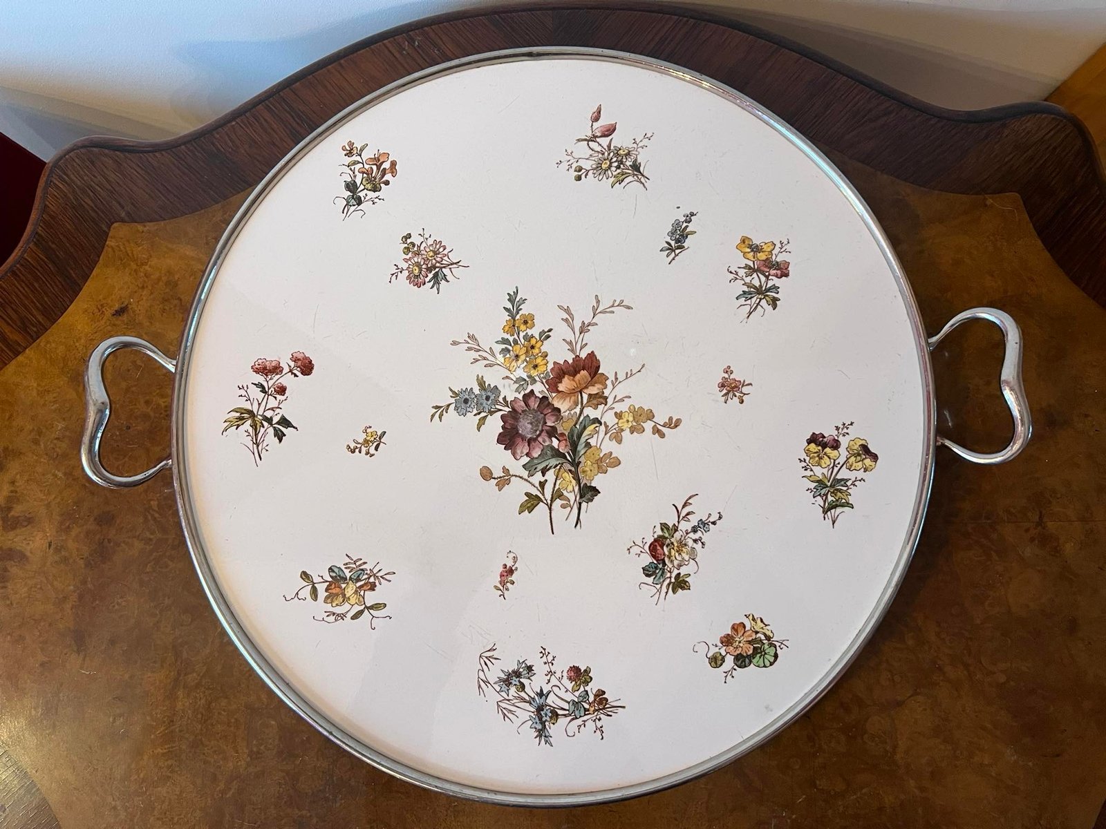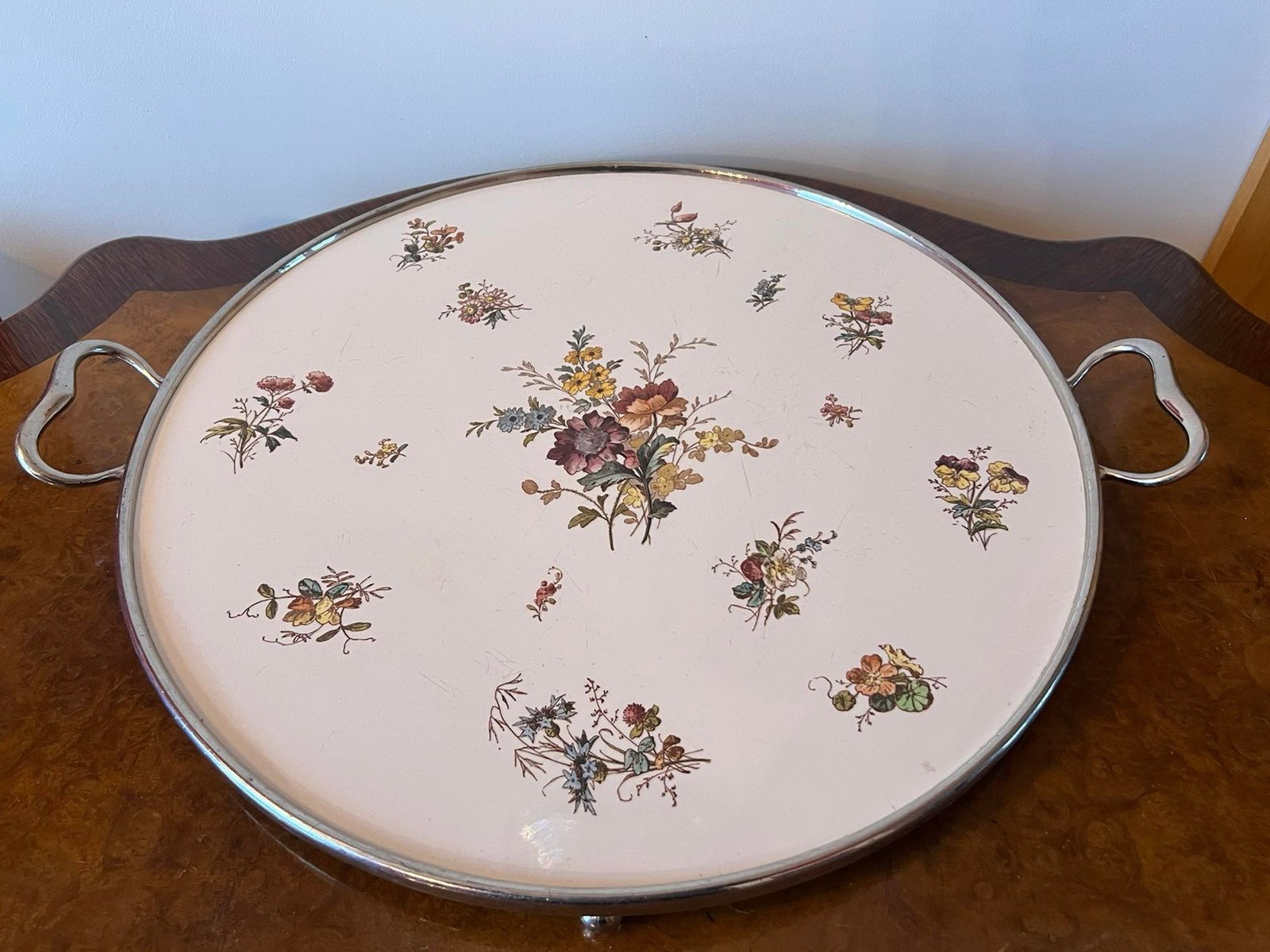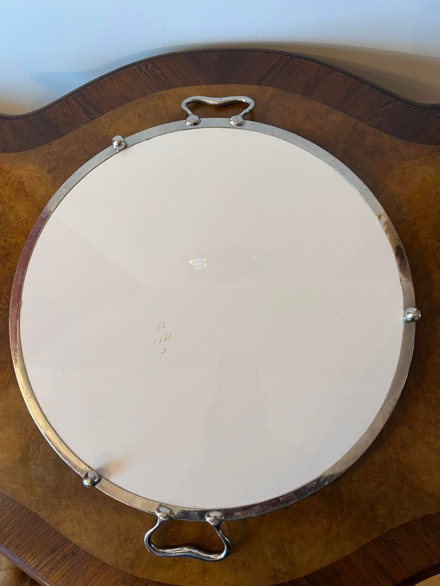 Padėklas glazūruotas, antikvarinis, didelis, 40 cm. skersmens. Ilgis su rankenomis 48 cm. Būklė labai gera. Kaina 73