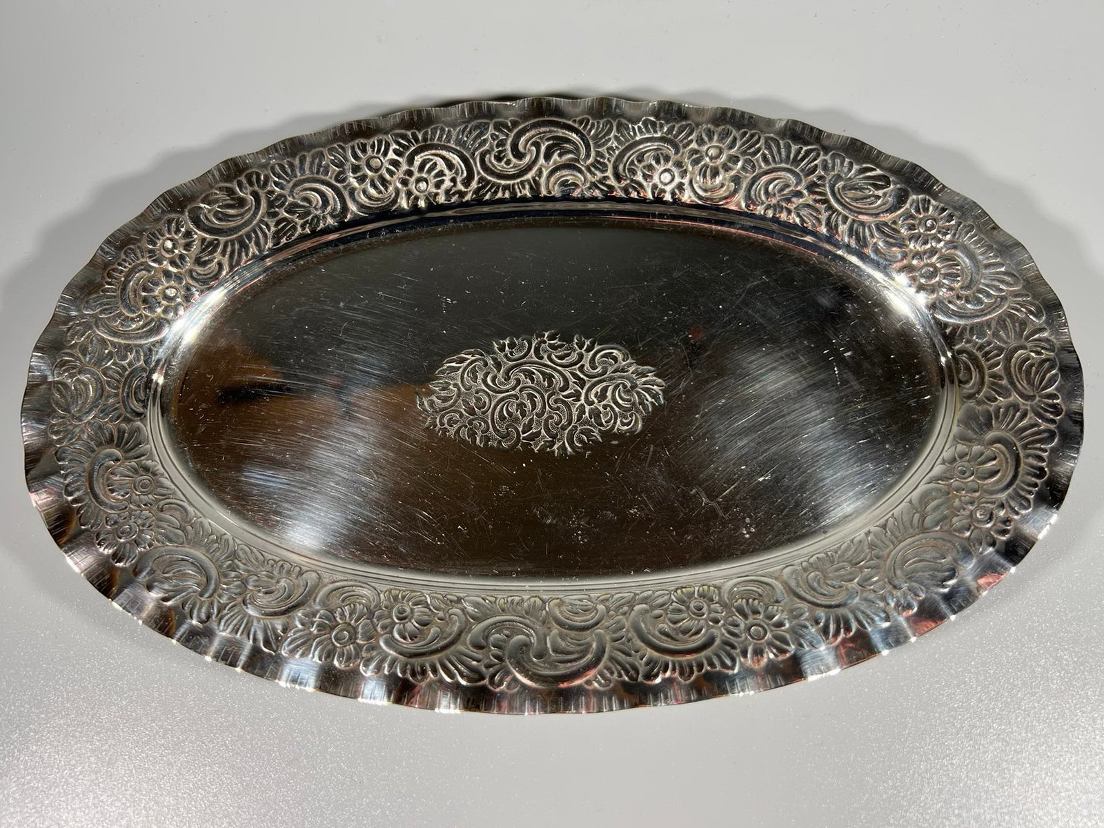 Padėkliukas antikvarinis, metalinis. Dydis: 15 x 23 cm. Kaina 16
