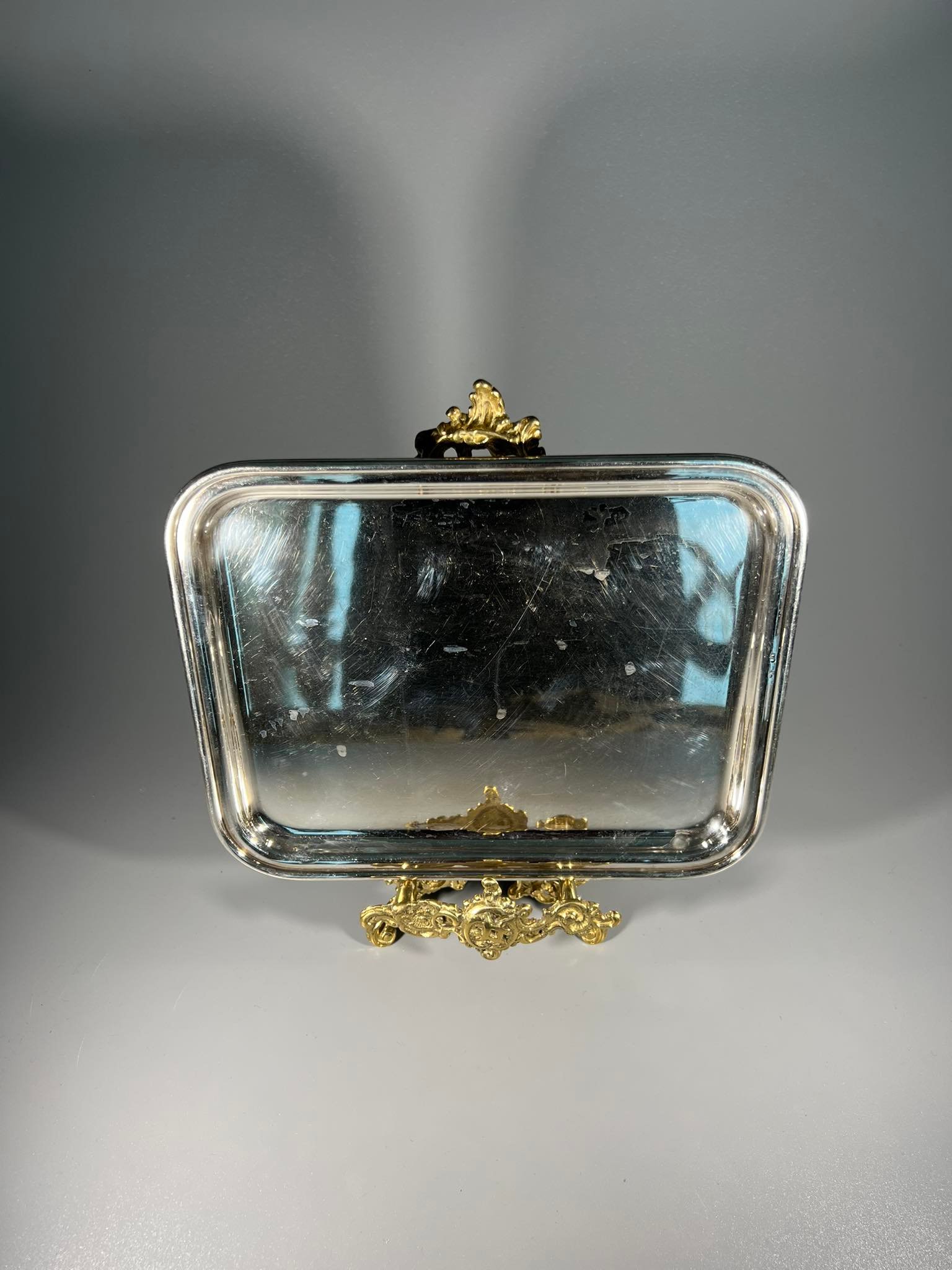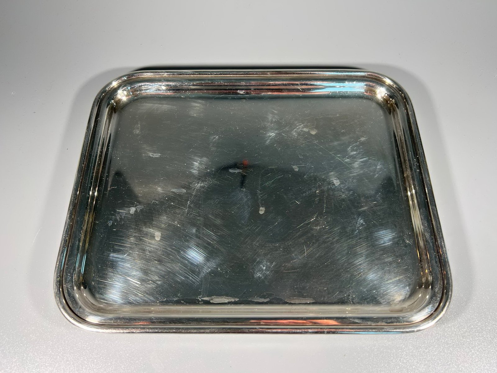 Padėkliukas sidabruotas, antikvarinis. Dydis: 18 x 23 cm. Kaina 22